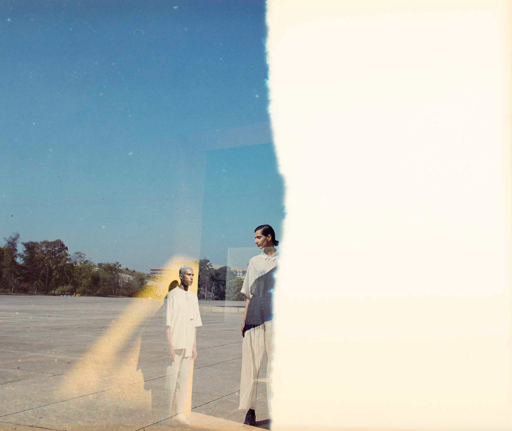 Sheer crop shirt with patch pockets and stitch line detail in chanderiwear it over our...