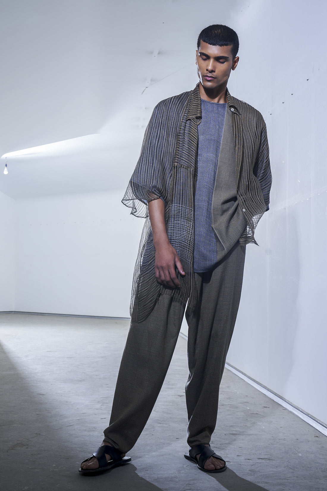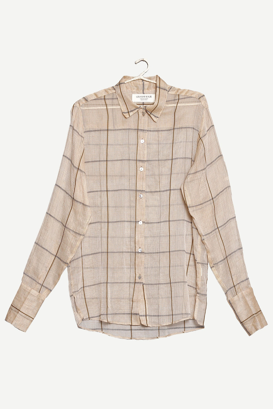 Checkered tailored shirt handwoven in kota doria silk Wear with relaxed pants or layer over...