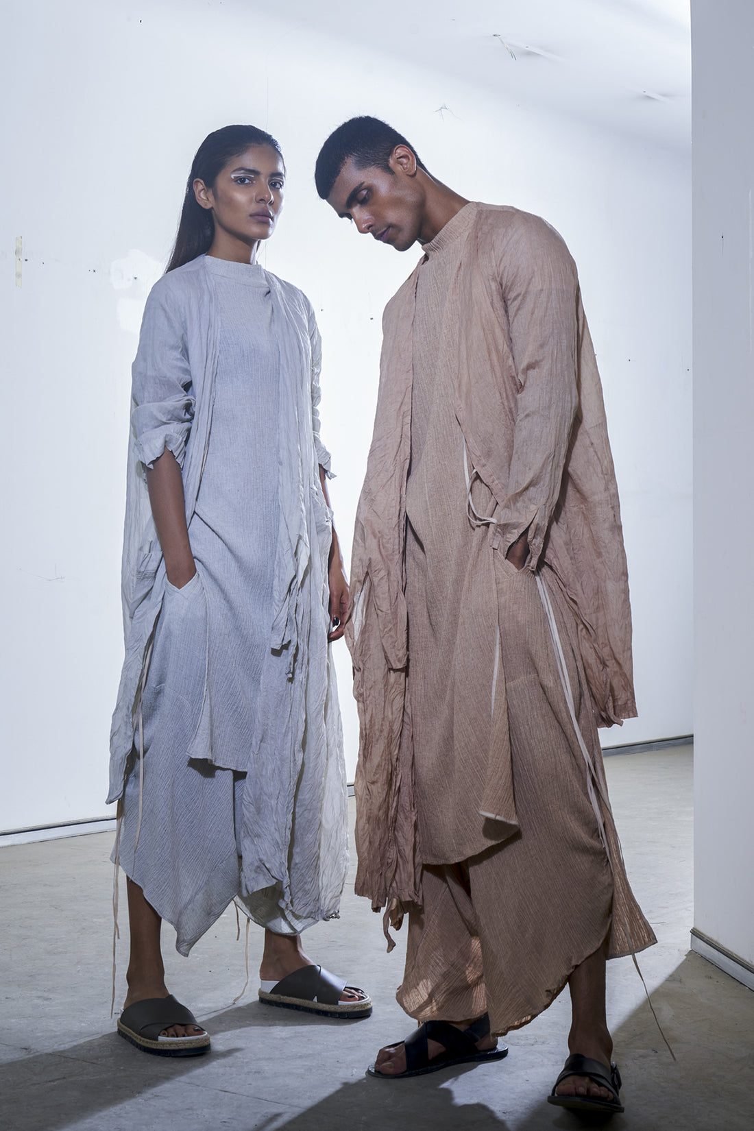 Tent dress with tiered panels of linen noil and matka silk adding texture and flounce...