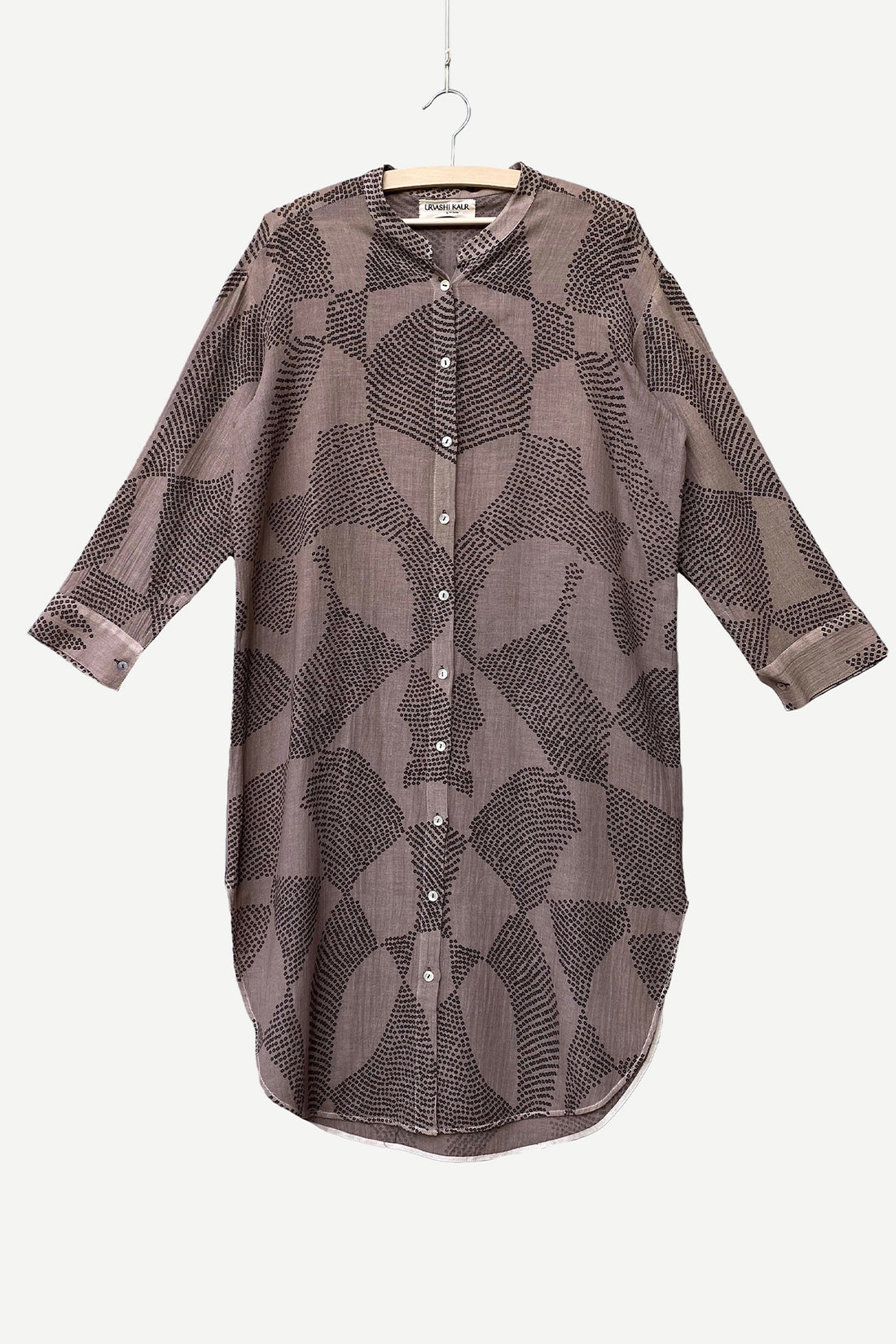 Shibori printed buttoned-down shirt dress in linen noil Wear as a dress or layered...