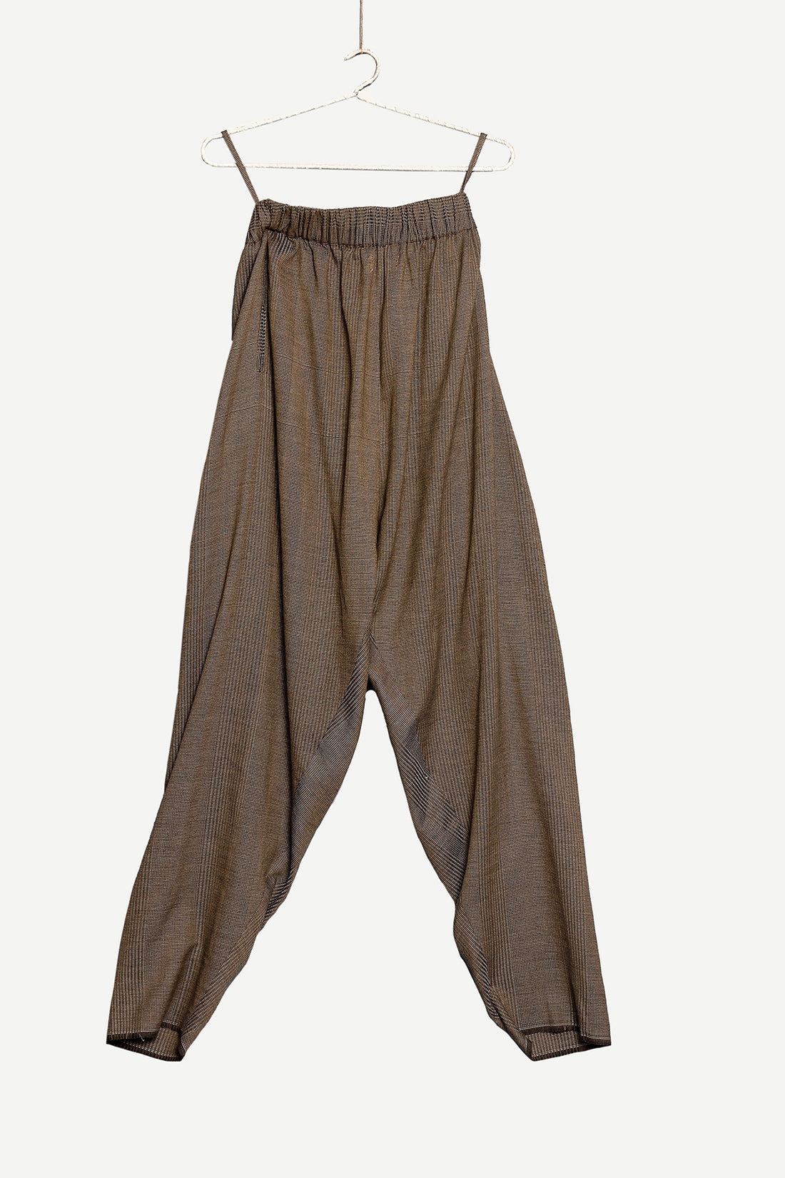 Relaxed crossover pants in handwoven organic cottonPair it under a skirt and matching crop topFabric: Handwoven...