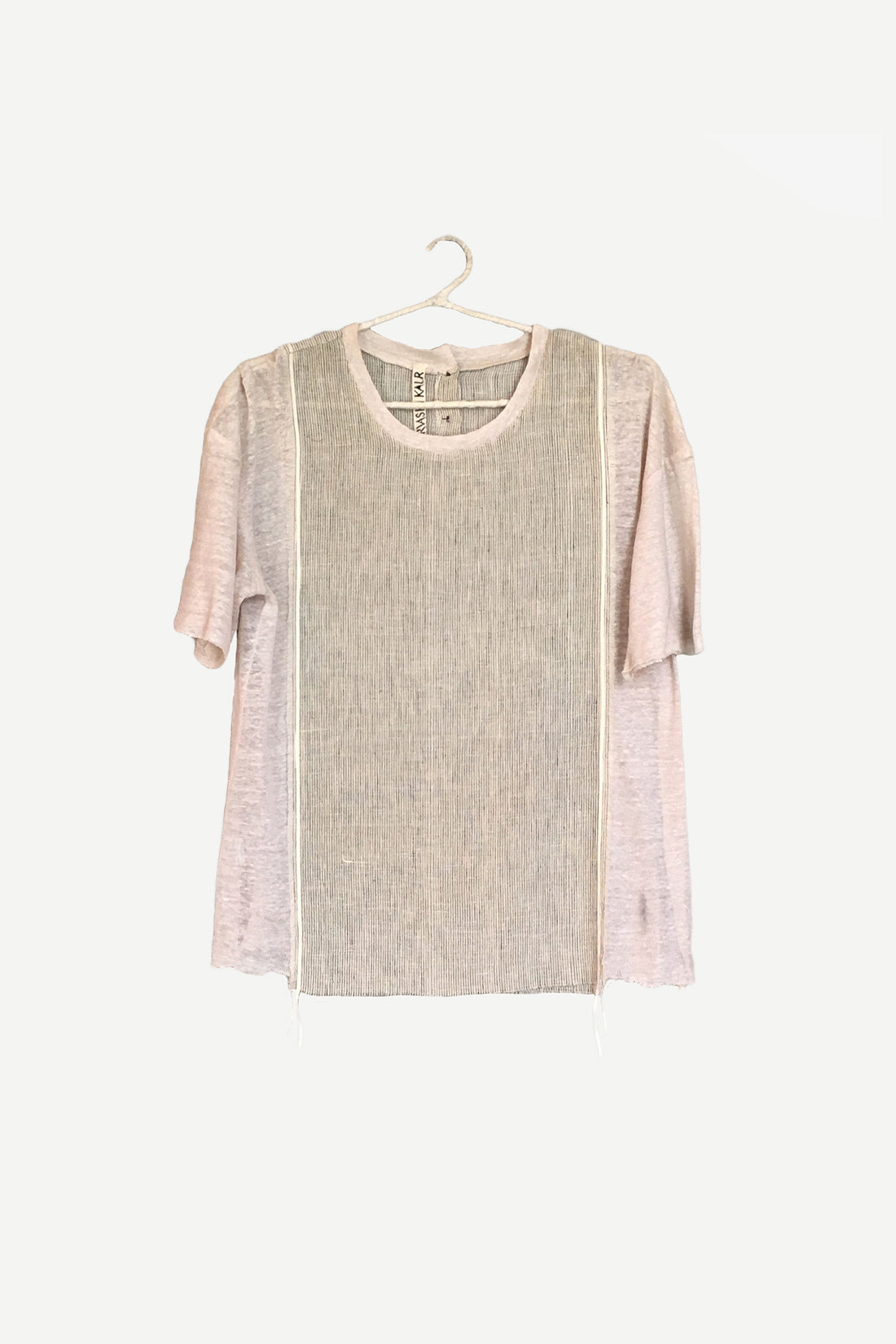 Round neck tshirt in striped handwoven organic cotton and linen silk jersey wear with relaxed...