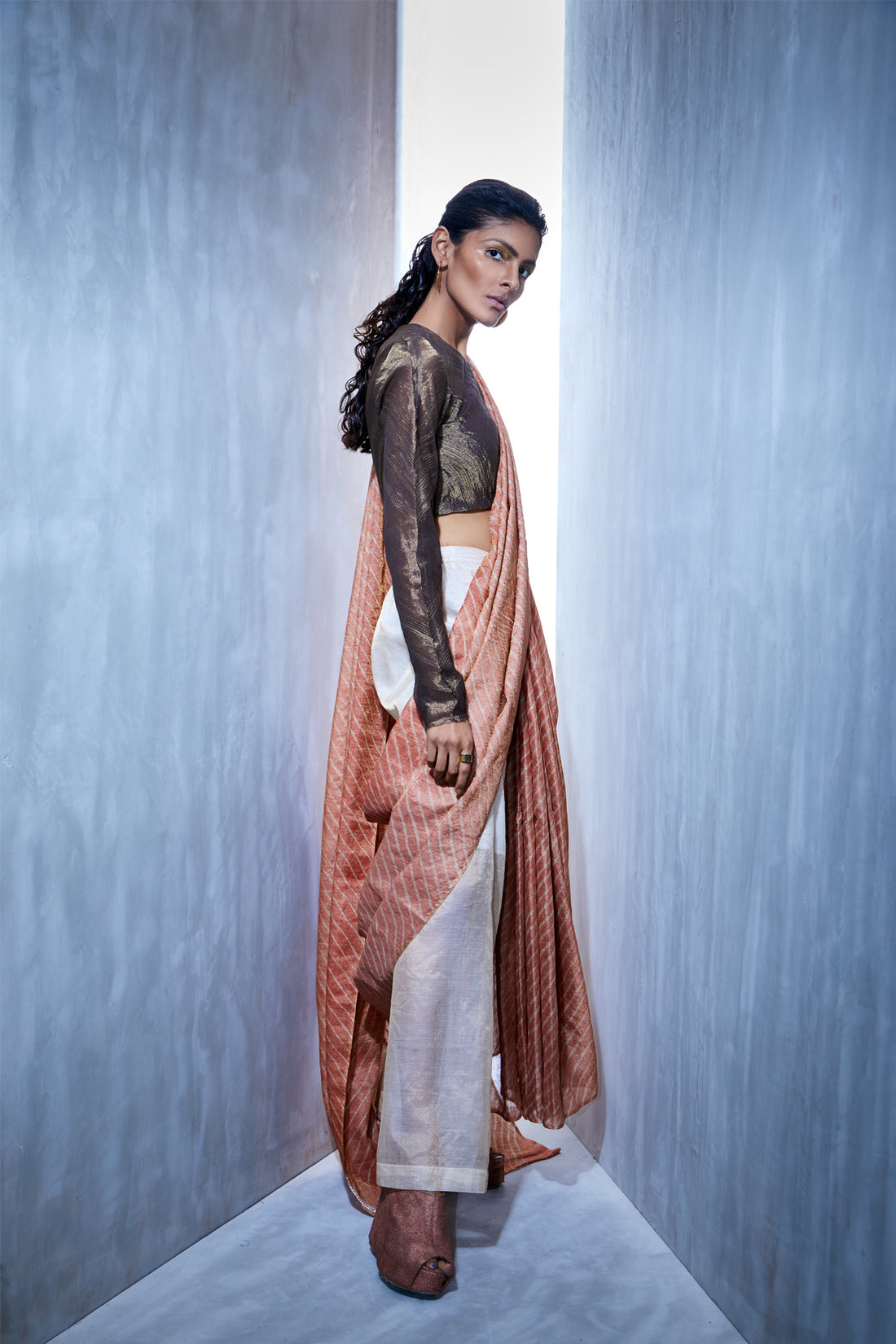 Micro-pleated wide pants in zari kota silkWear with our coord crop top, a tunic/dress r...