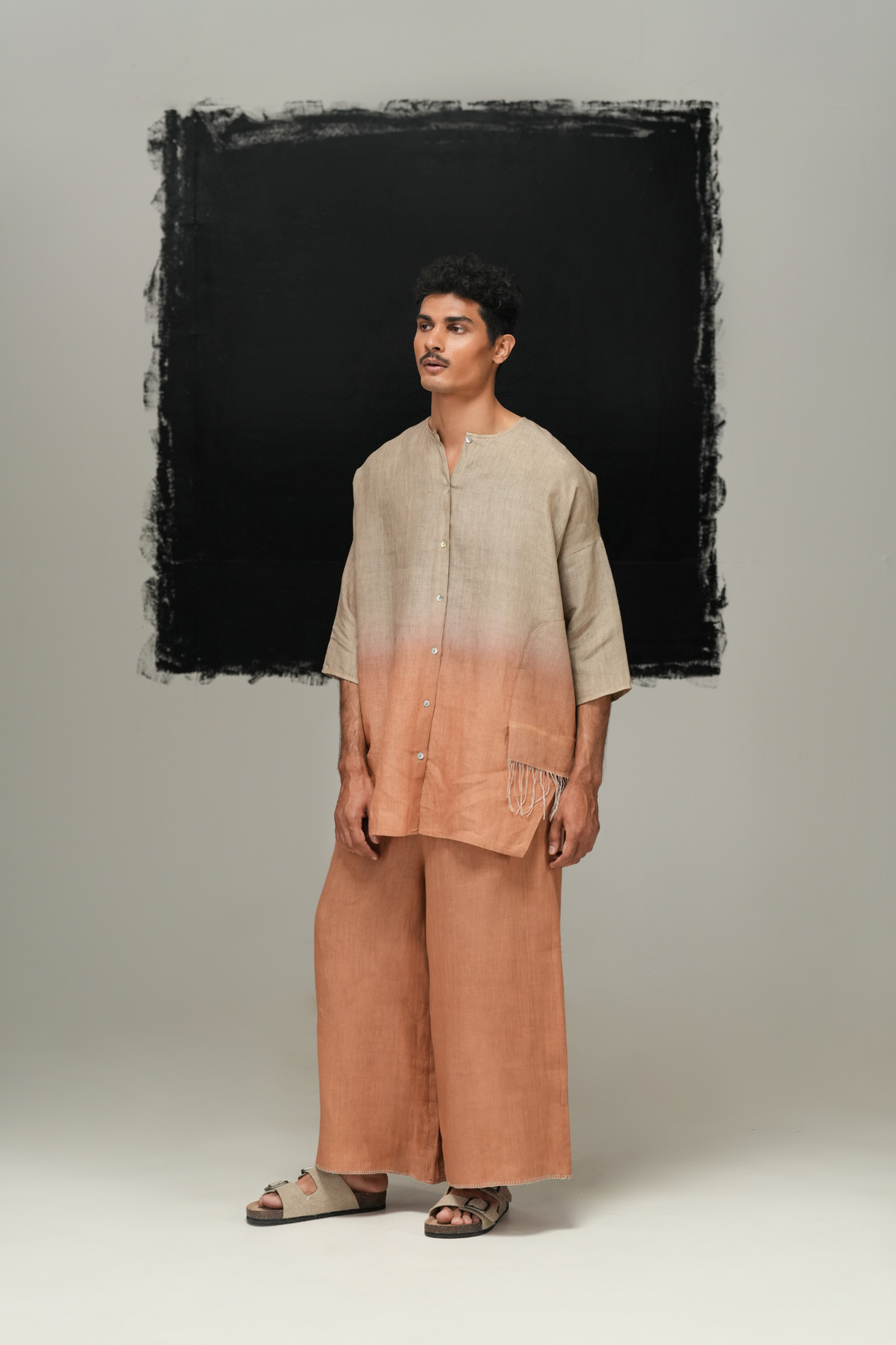 Relaxed top with dip-dye detailing, crafted in handwoven fabric Wear it alone for a refined...