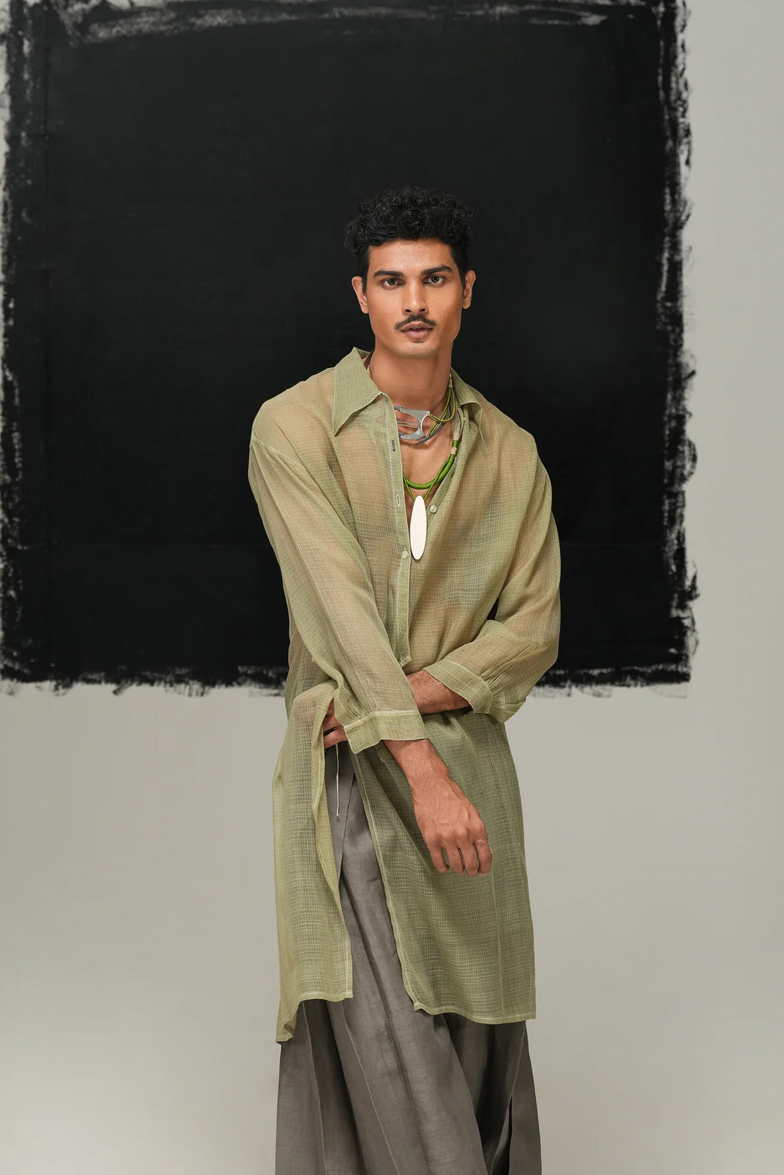 Handwoven Kota Cotton sheer wrapped shirt dress with stitch line details Fabric: Handwoven Kota Cotton...