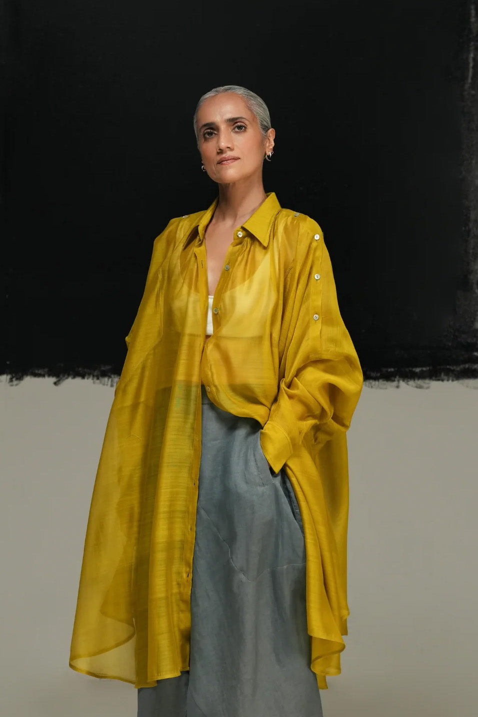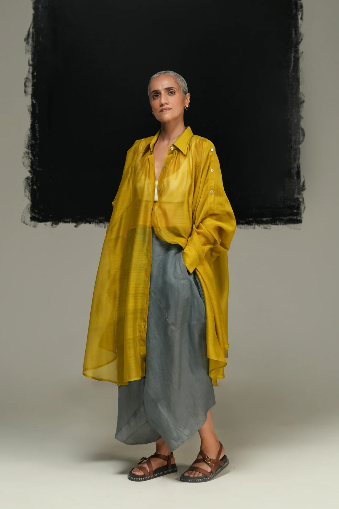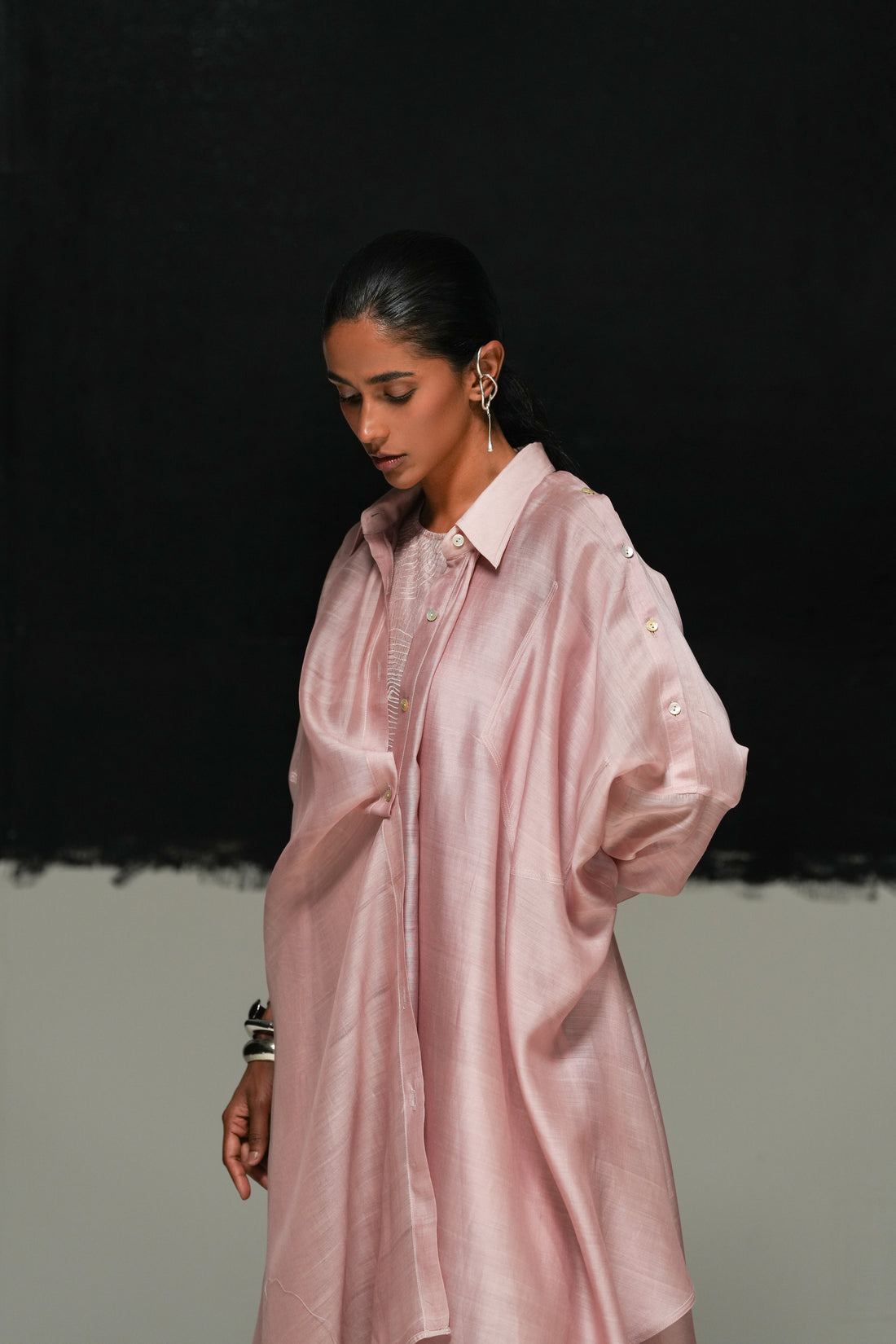 A timeless piece that embodies quiet elegance and balance. Crafted in handwoven mulberry silk, its...