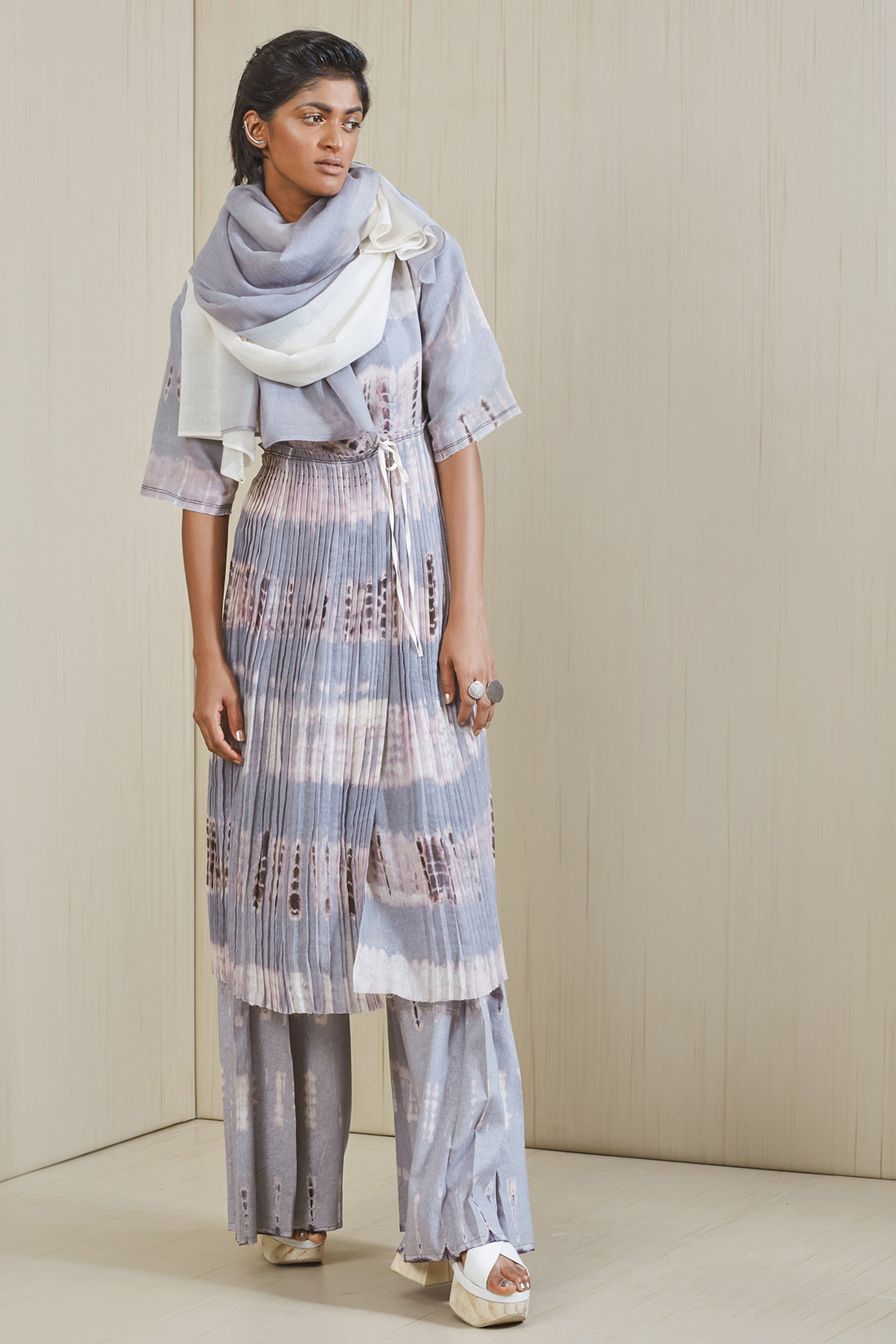 Pleated hand tie and dye wide pants in matka silk Wear with a tucked-in shirt...