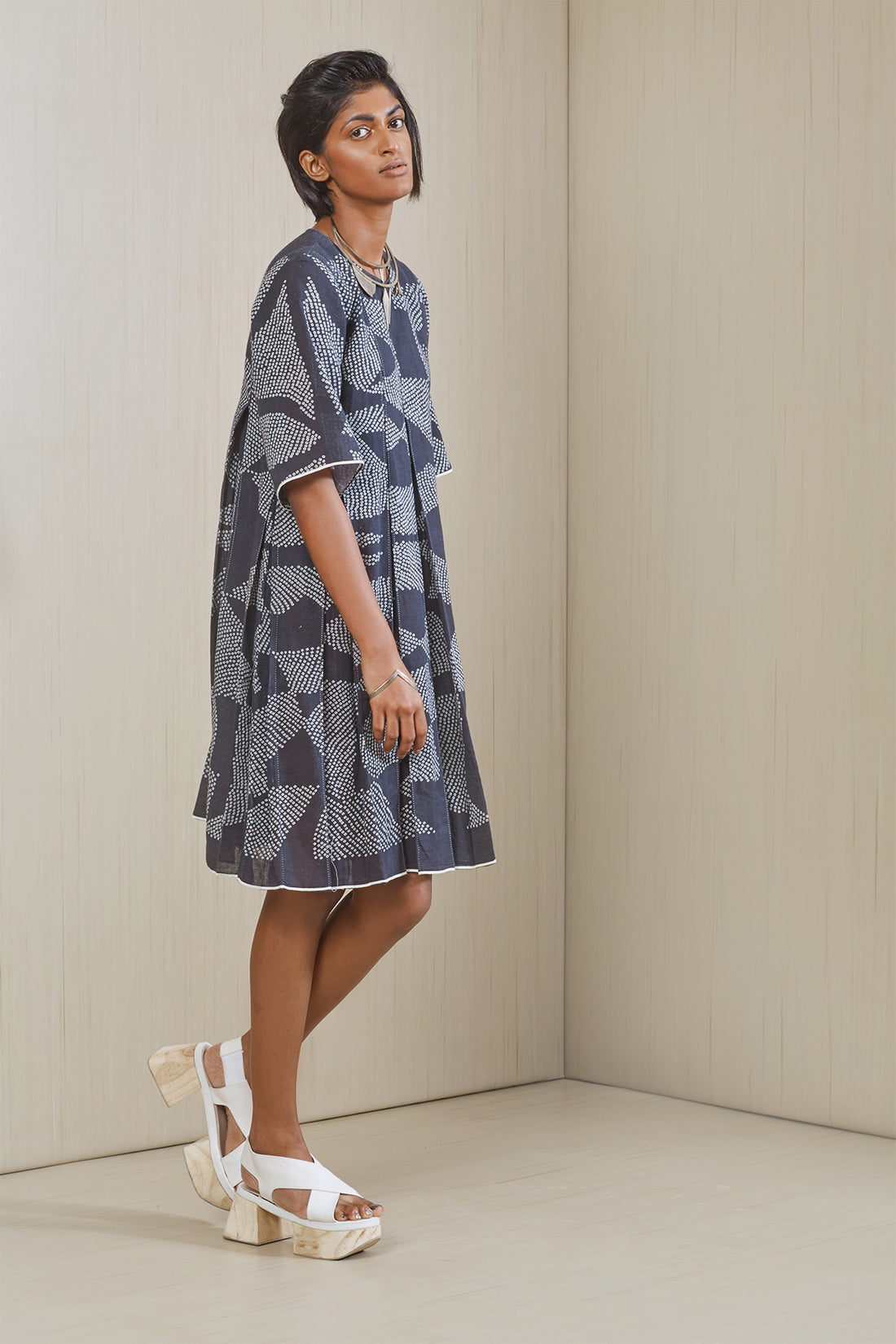 Box-pleated dress in shibori print cotton Wear solo as a dress or paired with brpoad...