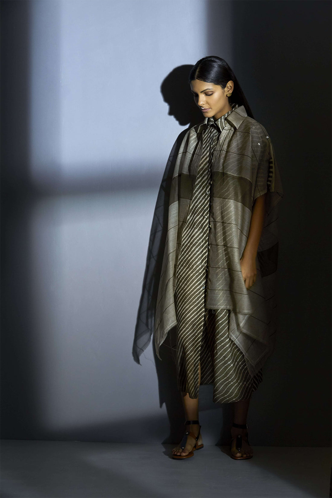 Blockprinted oversized, collared shirt in kota silkPair it with a long line shirt dress Fabric: Handwoven...