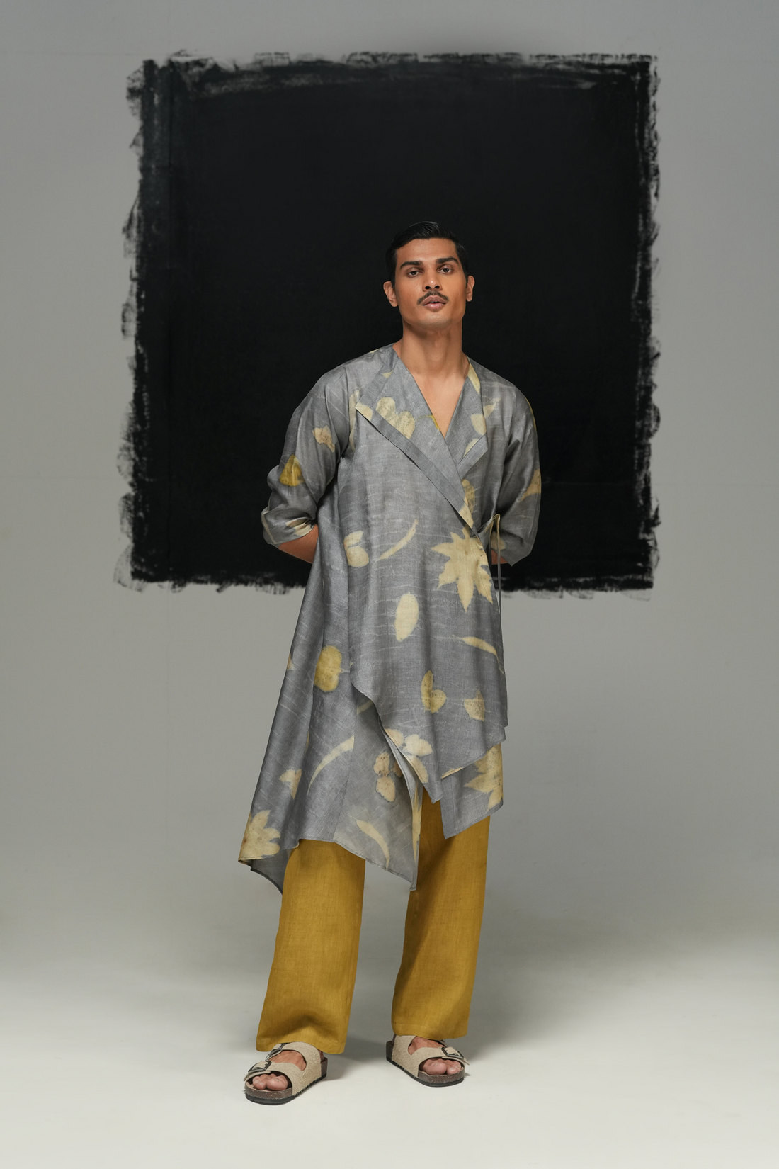 A waistcoat that's crafted in handwoven mulberry silk is a silhouette that captures the serenity...
