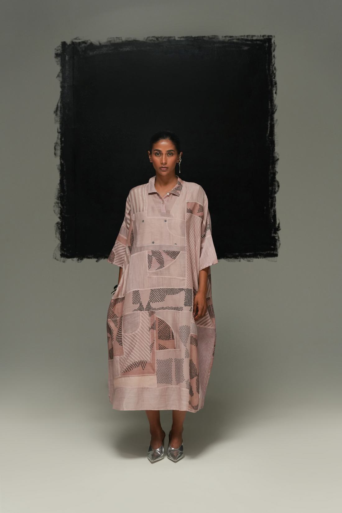 Relaxed-fit dress in handwoven and tie-dyed tussar silk . Wear it solo or with our...