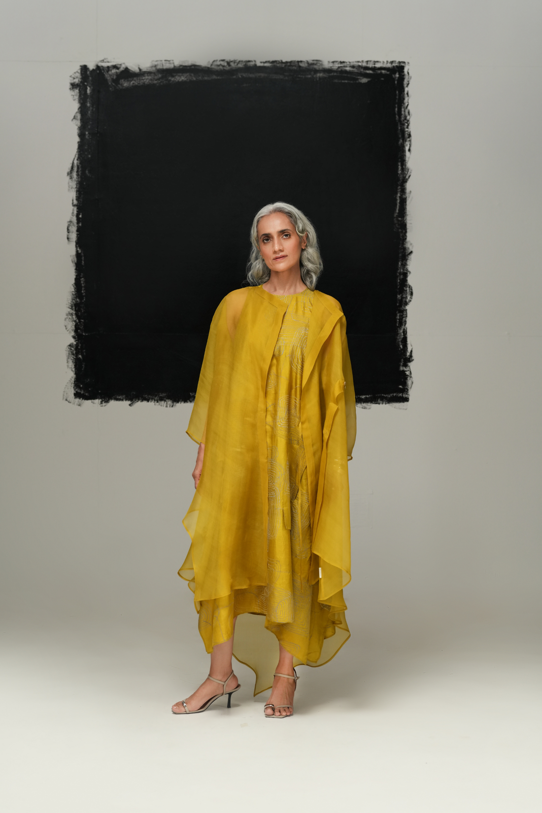Tie-dye dress, crafted in handwoven tussar silk, is a fluid silhouette, a versatile wardrobe essential....