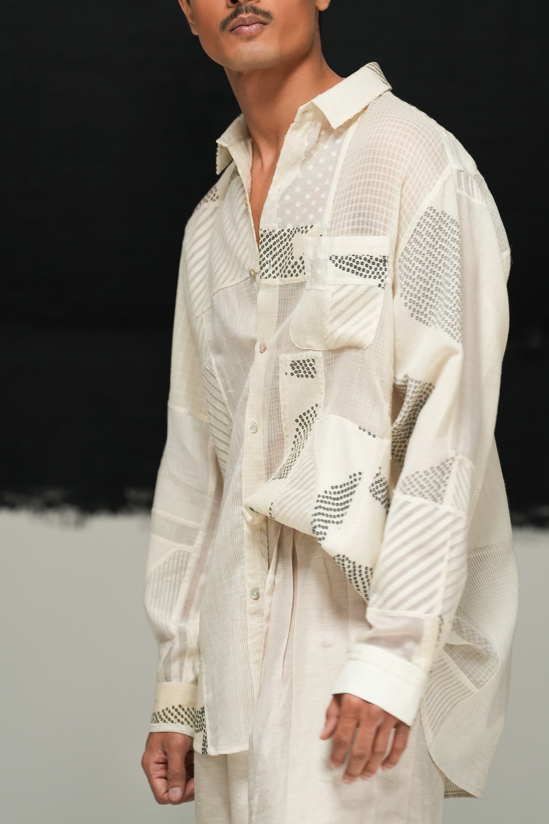 A shirt made with  patchwork scraps, with the over-dyed fabric  Fabric: Mixed Material Cotton, Zero...