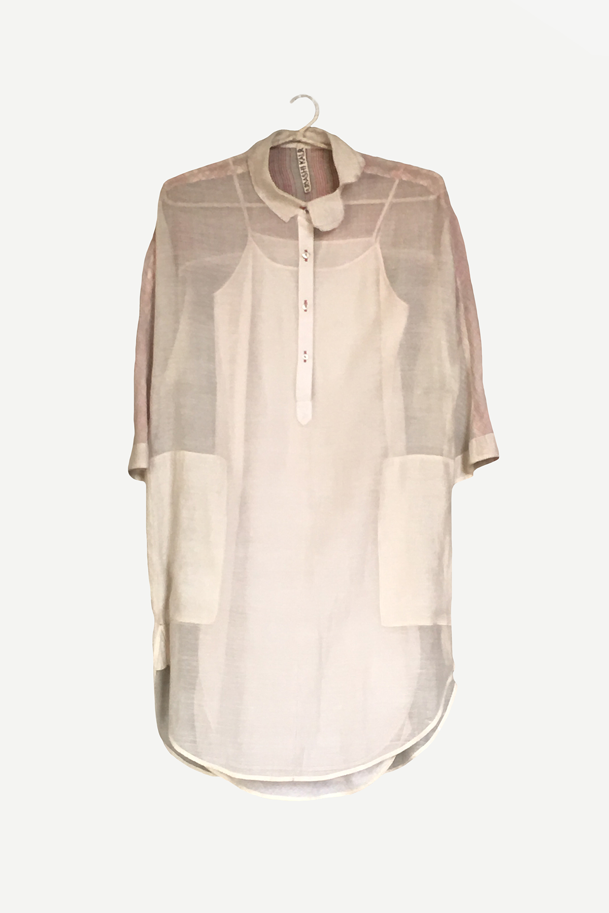 Easy tunic in cotton silk with statement back fringe and stitch line details adding texture