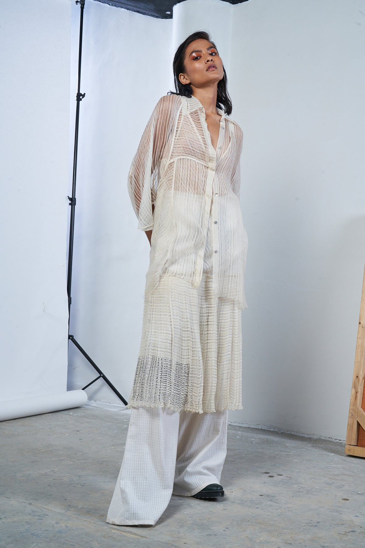 Easy, fit and flare pants in handwoven organic cotton wear with a crop top and an overlay or under a tunic