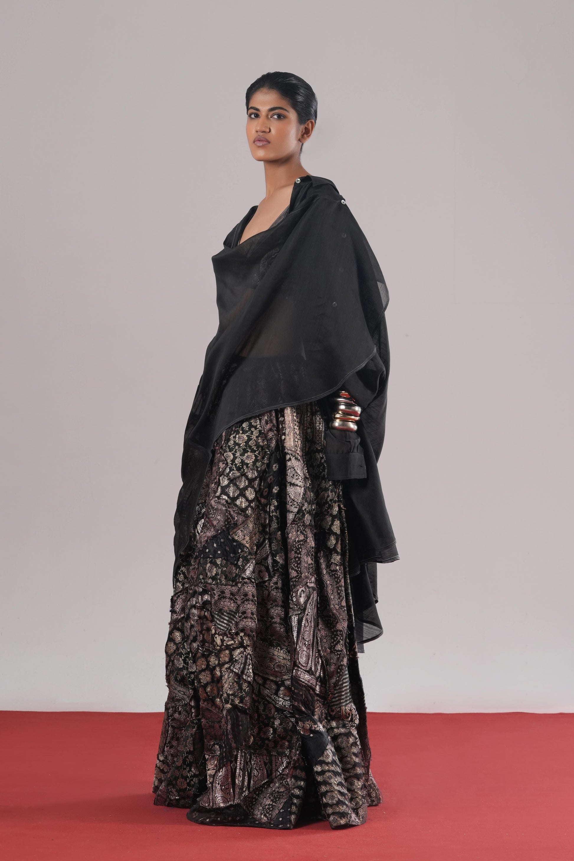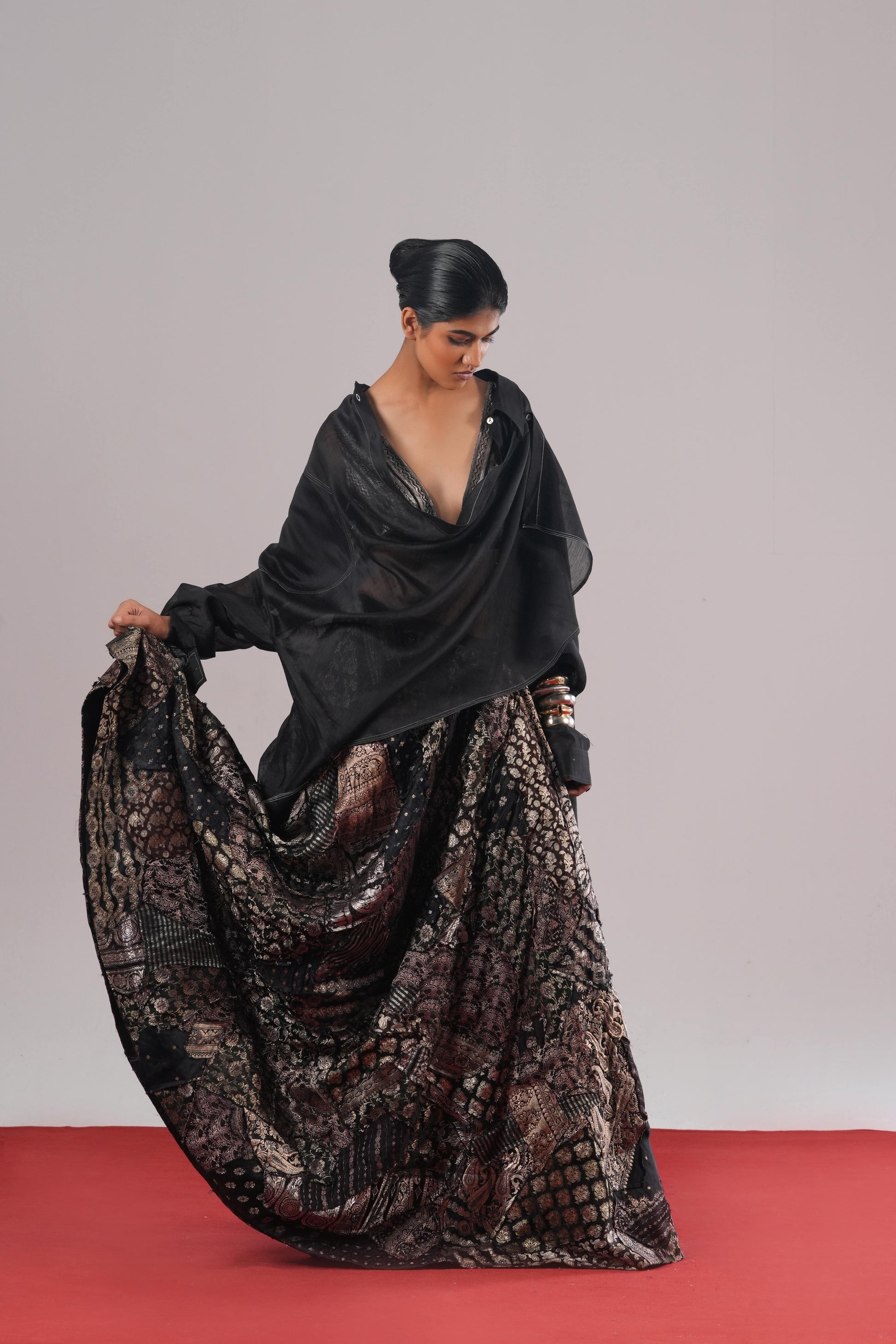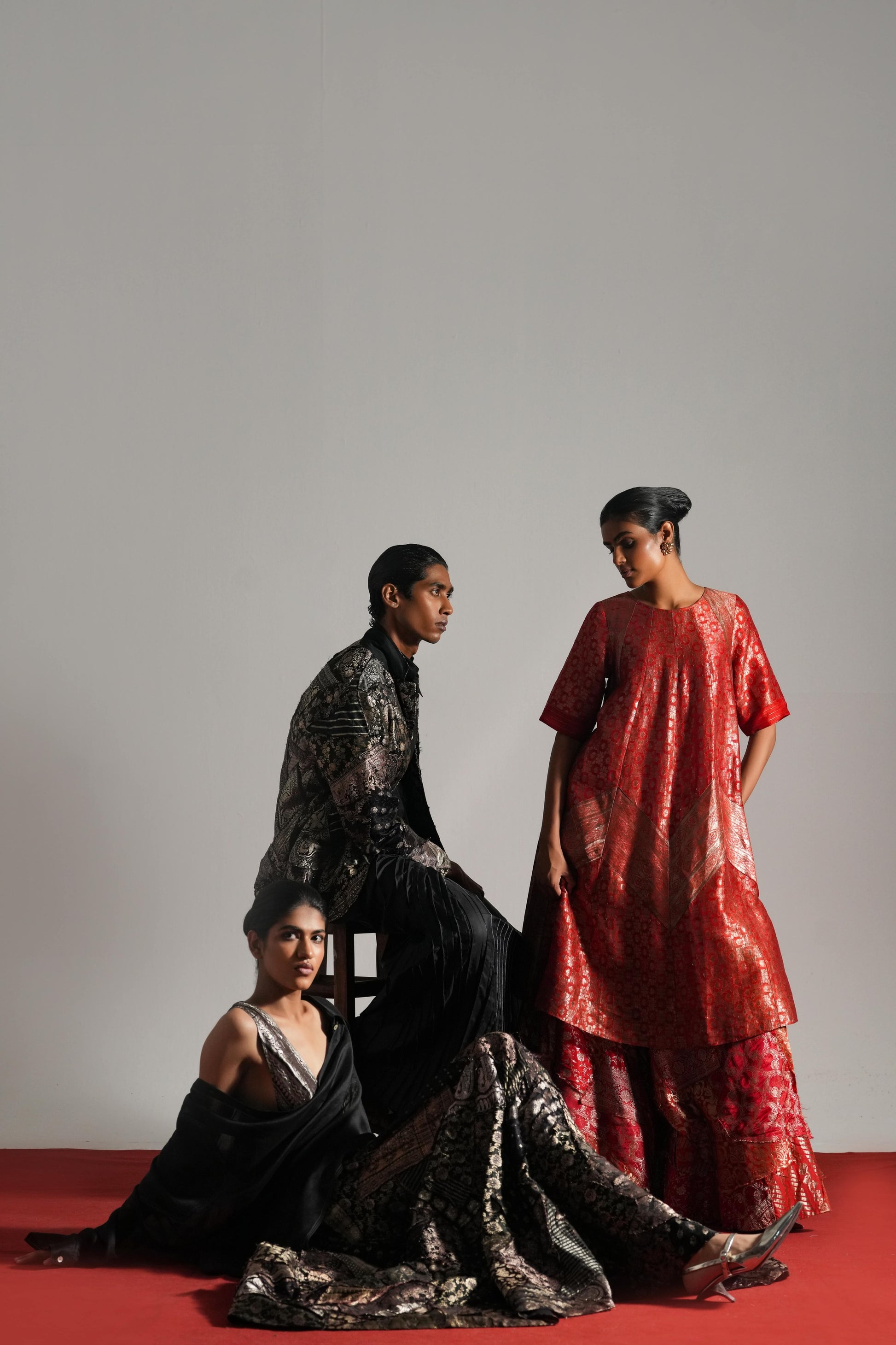 The Borders in the garment is created using archival and pre-loved brocade saris, reimagined as part of our Renew Project to extend textile lifecycle through upcycling and circular design. Each piece is handcrafted and produced in limited quantity.