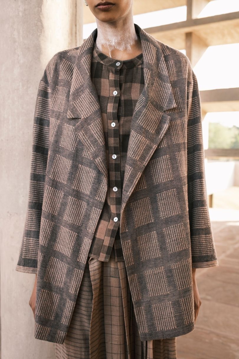 Tailored check blazer in hand spun cotton