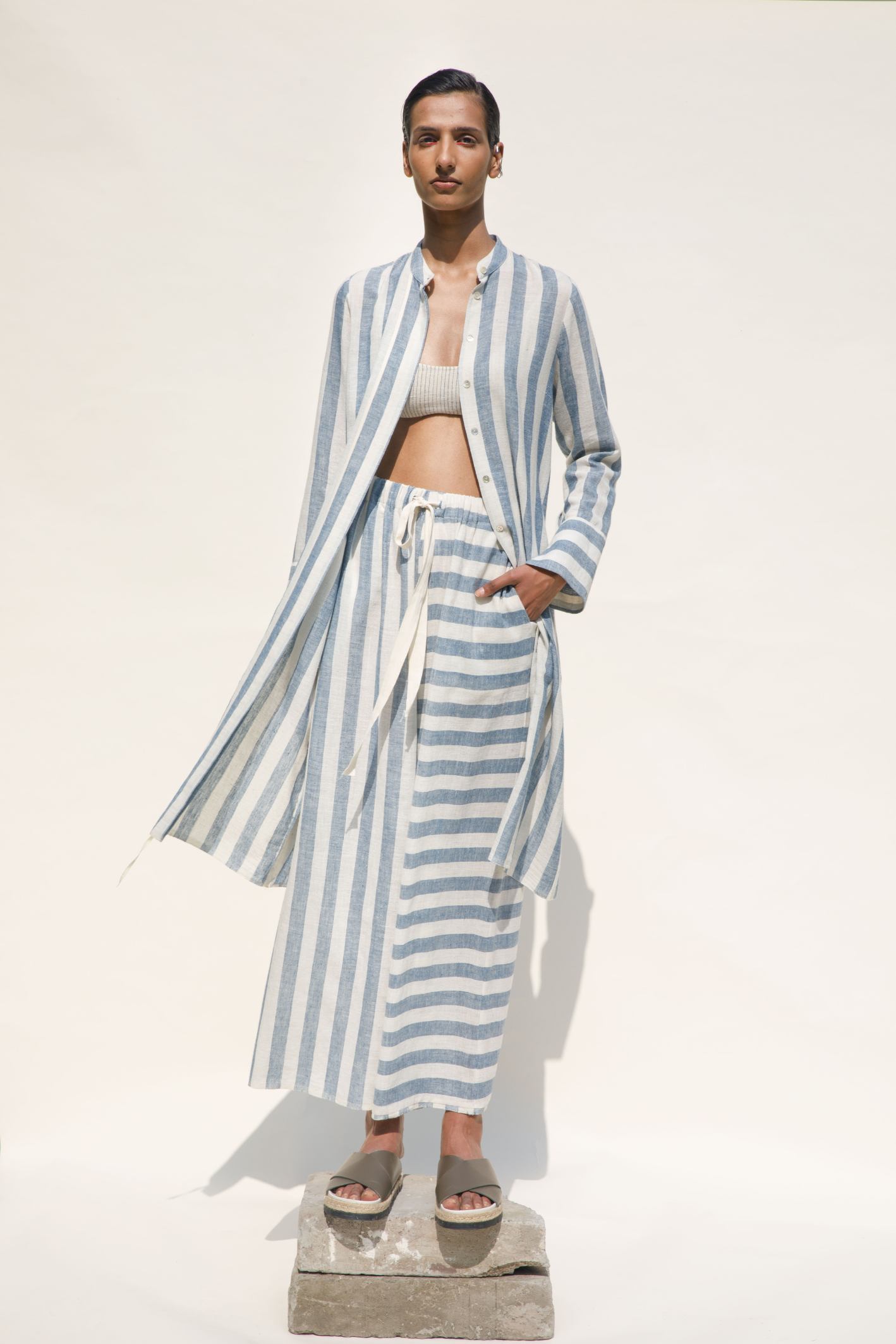Buttoned-down, striped, tunic in hand spun cotton wear as a dress or pair it with our matching d lookpants for a co-ord.