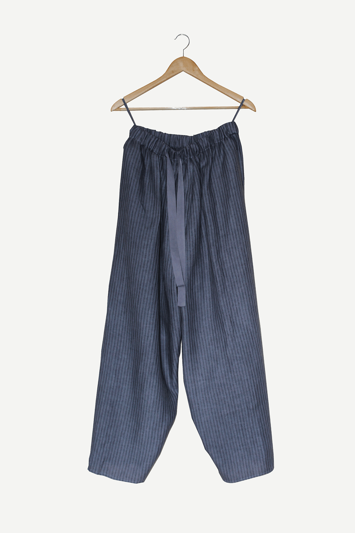 Relaxed, jogger-style pants in handwoven organic cotton with a drawstring waist wear with a relaxed shirt or a bralette and a light layer