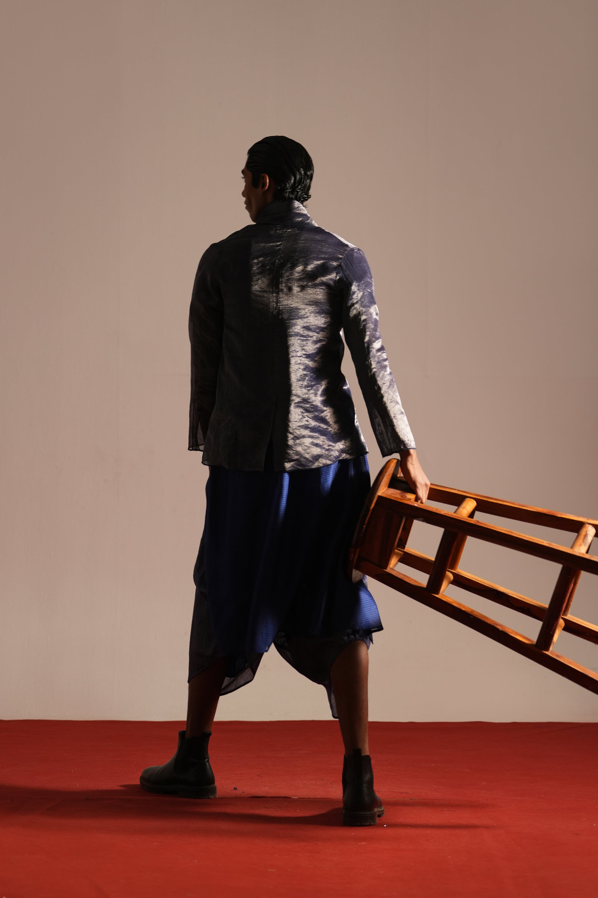 Tailored in handwoven zari kota silk, the Dash Blazer is defined by clean lines and subtle sheen.