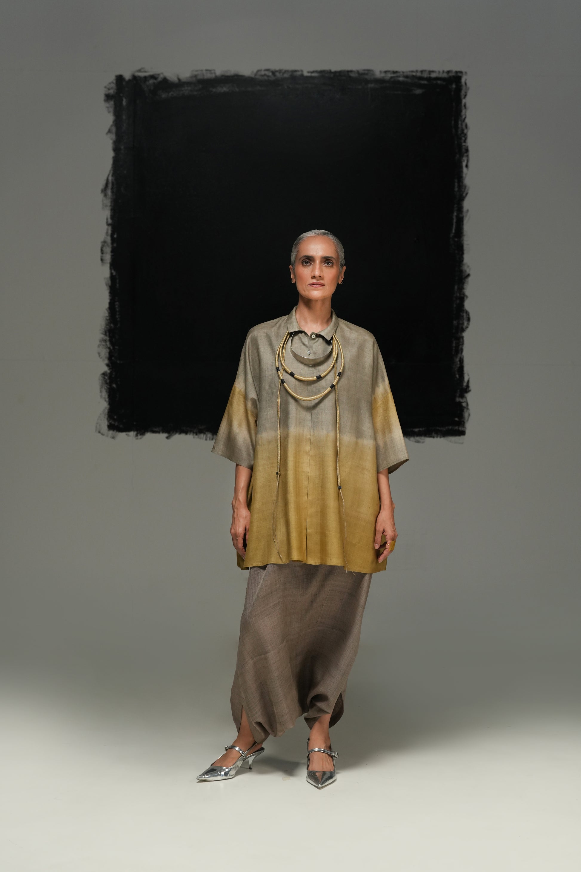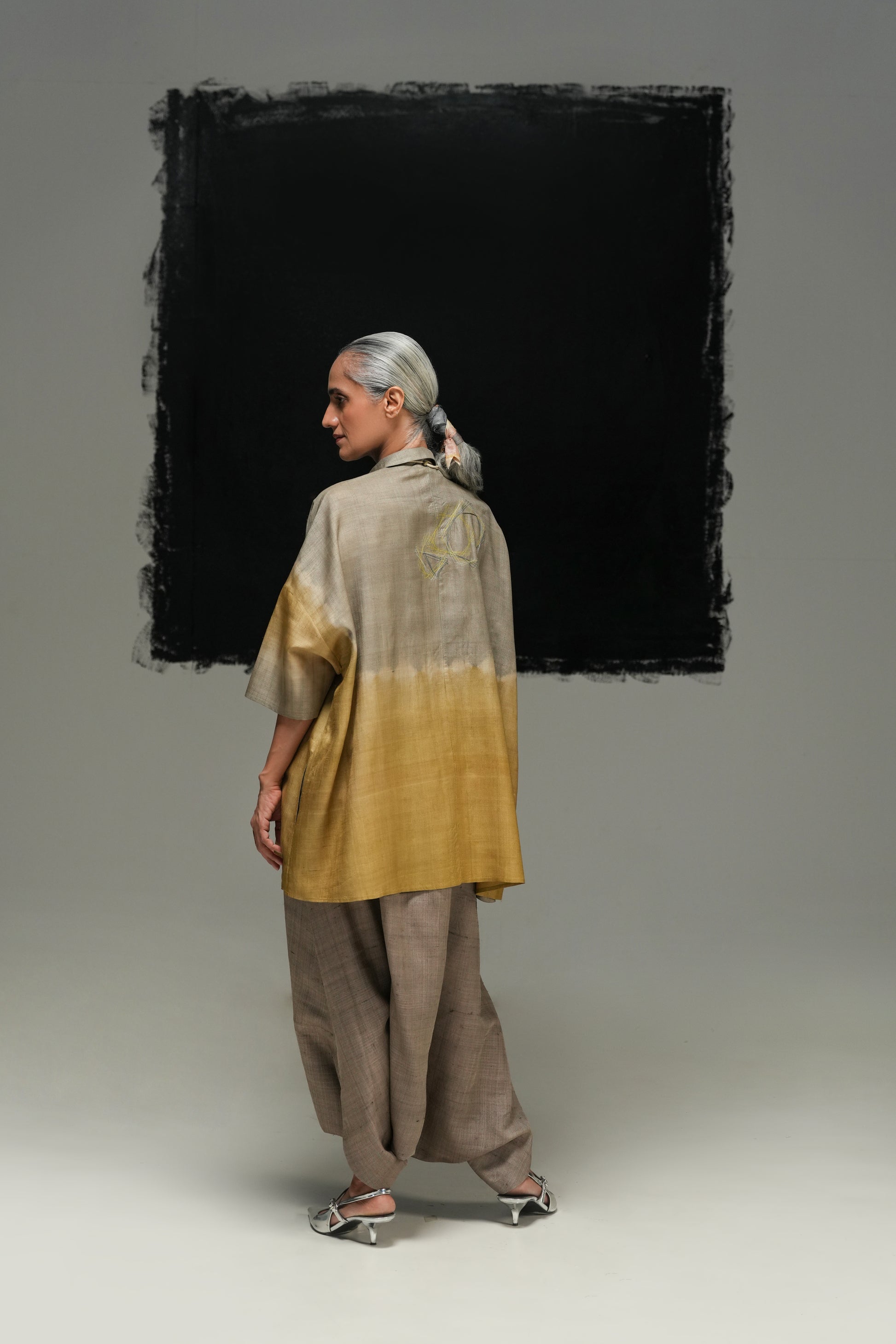 Fabric & technique: Handwoven, natural-dyed tussar silk