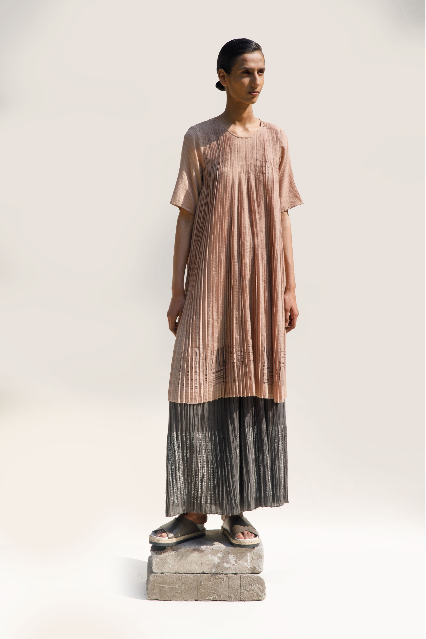 holding the pleats wear with a tunic or crop top and overlay for a layered look.