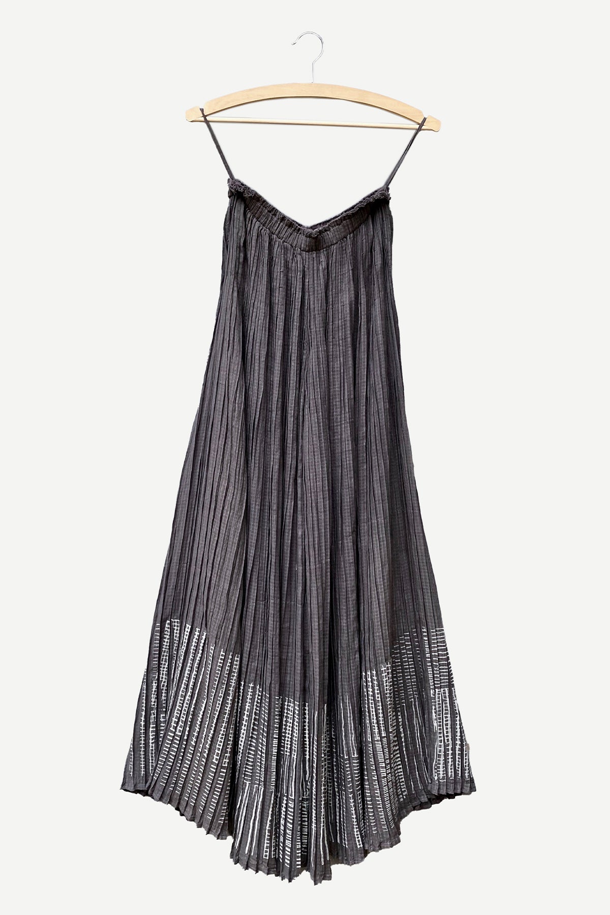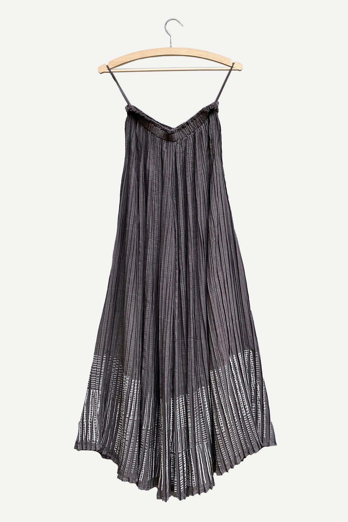 Blockprinted hand micro-pleated wide pants in checkered cotton with kantha stitch details