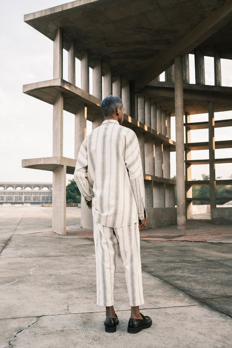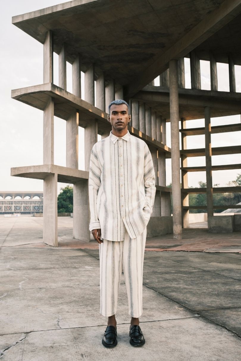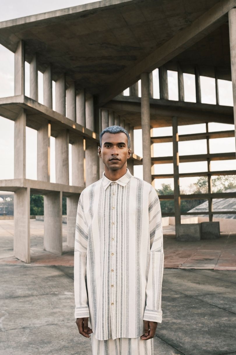 buttoned-down, tailored striped shirt with collar in 100% handloom cotton