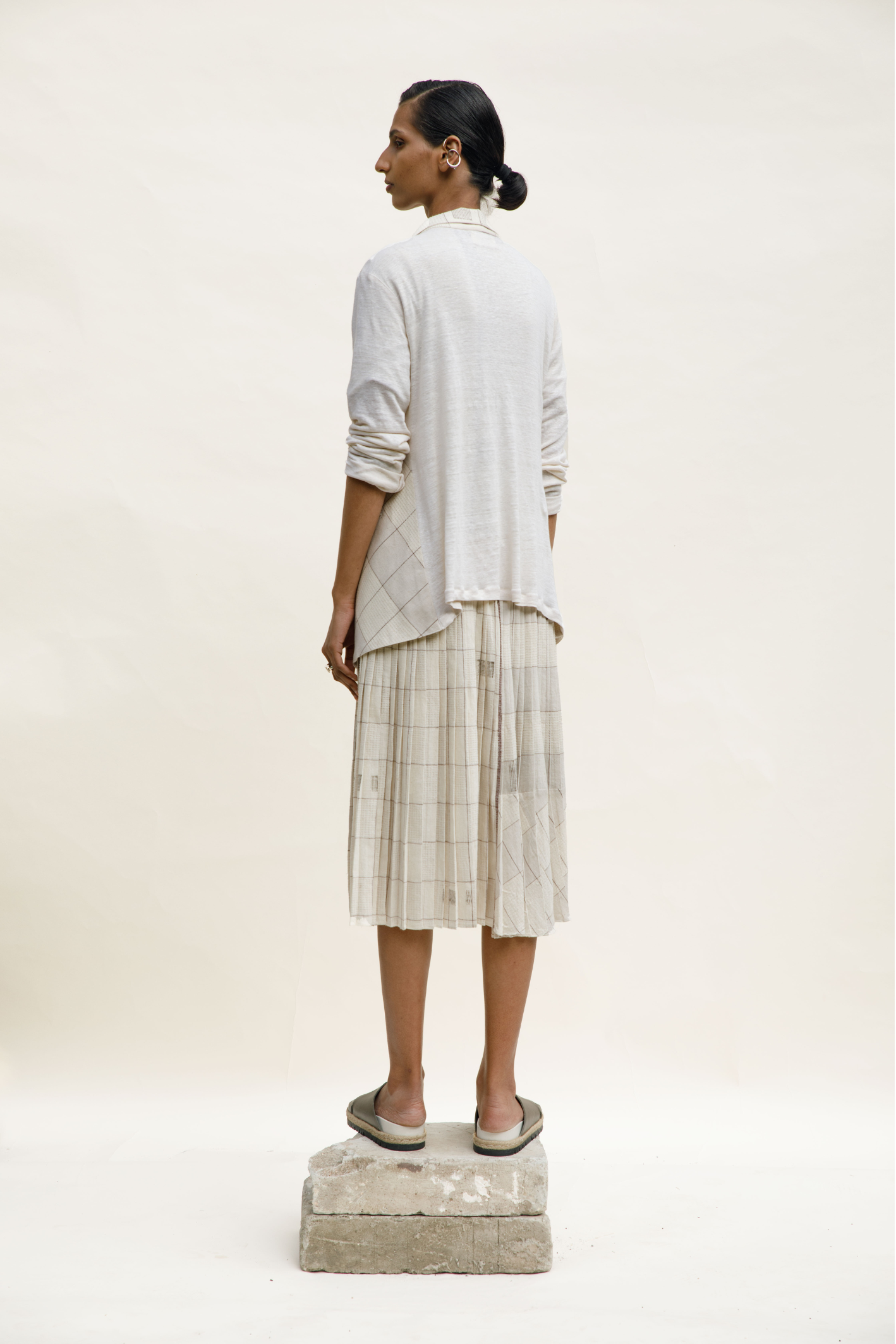 Tailored jacket in 100% hand spun conventional cotton with block print and play of rectangles and squares layer it over our dress for an evening look or pair it with shirt and pants.