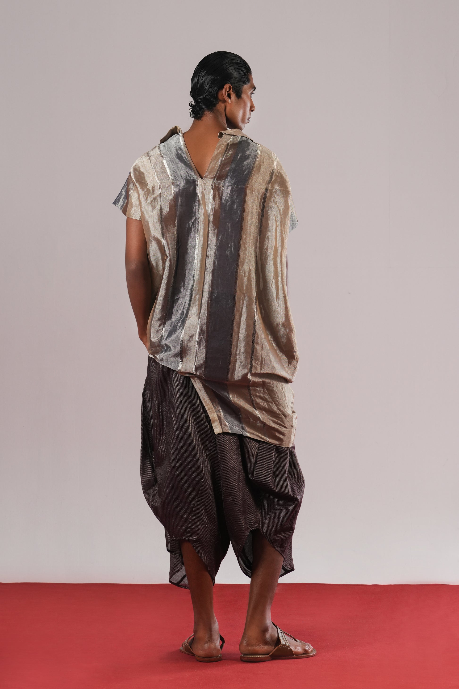 A cocoon silhouette crafted in handwoven tissue silk, minimal yet radiant.