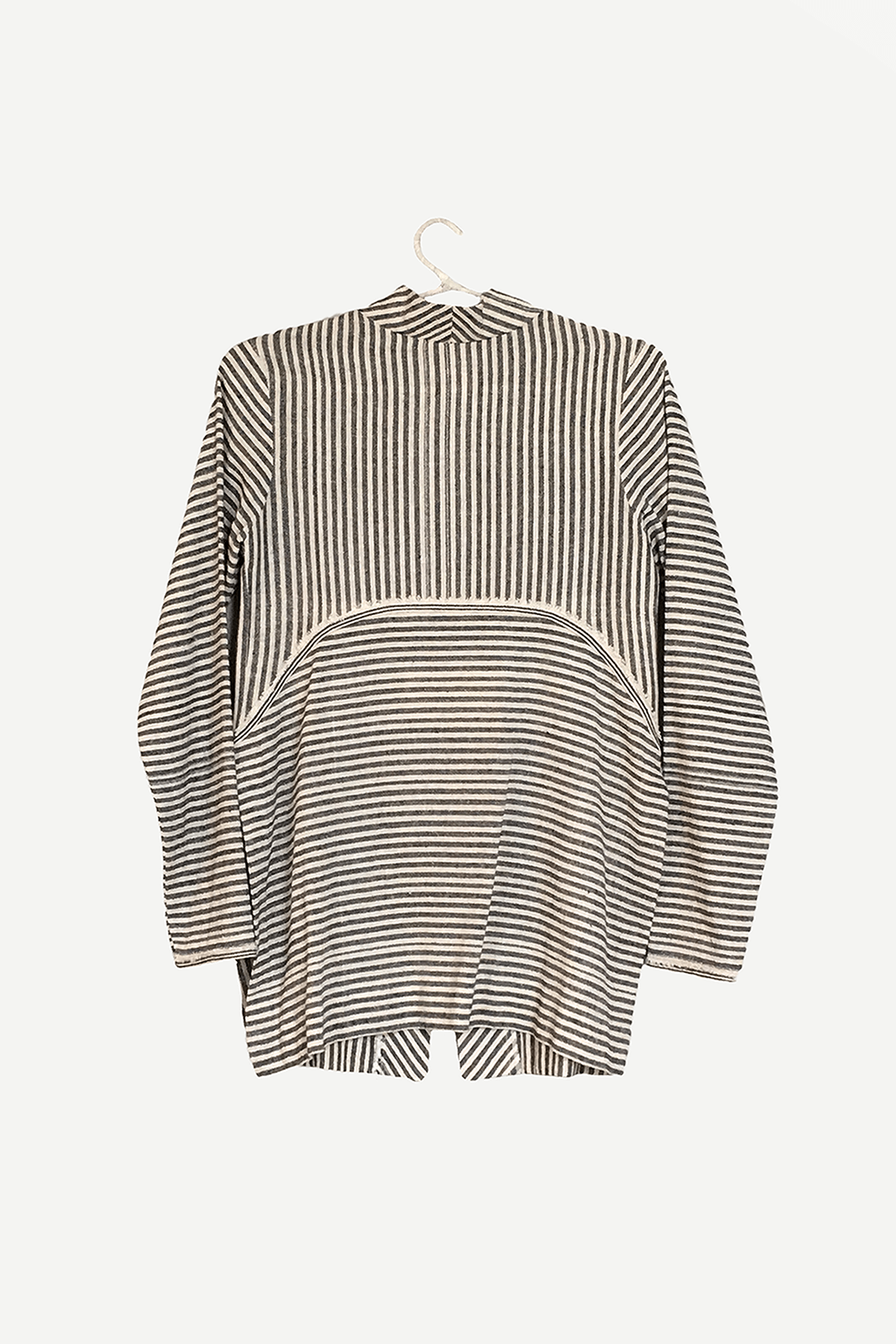 Tailored, form-flattering jacket in textured striped handwoven organic cotton khes