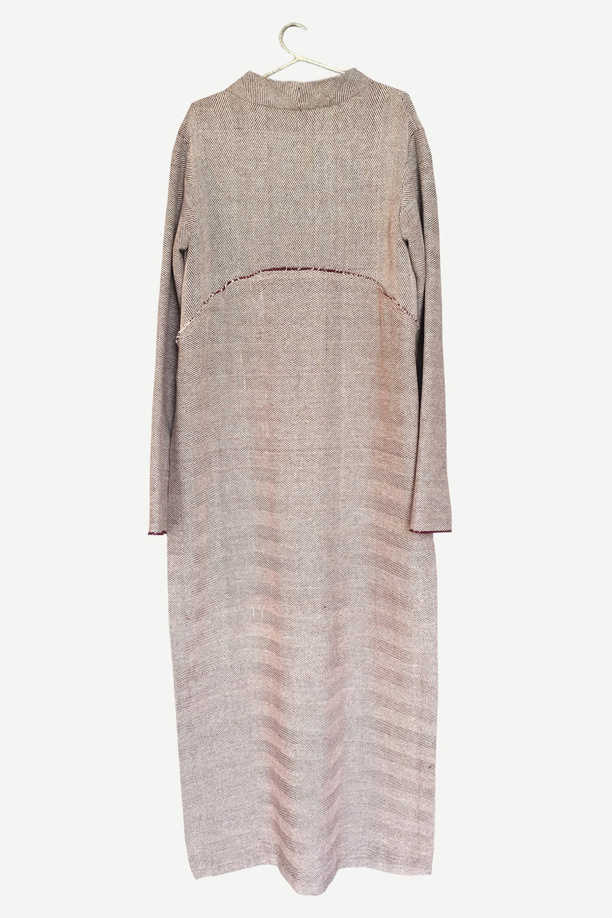 Tailored, form-flattering panelled jacket in textured striped handwoven organic cotton khes