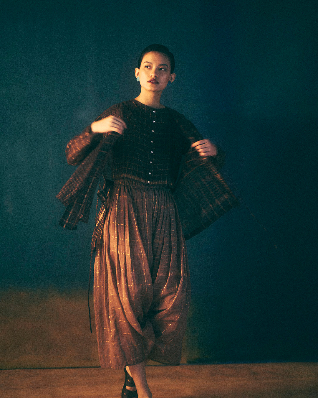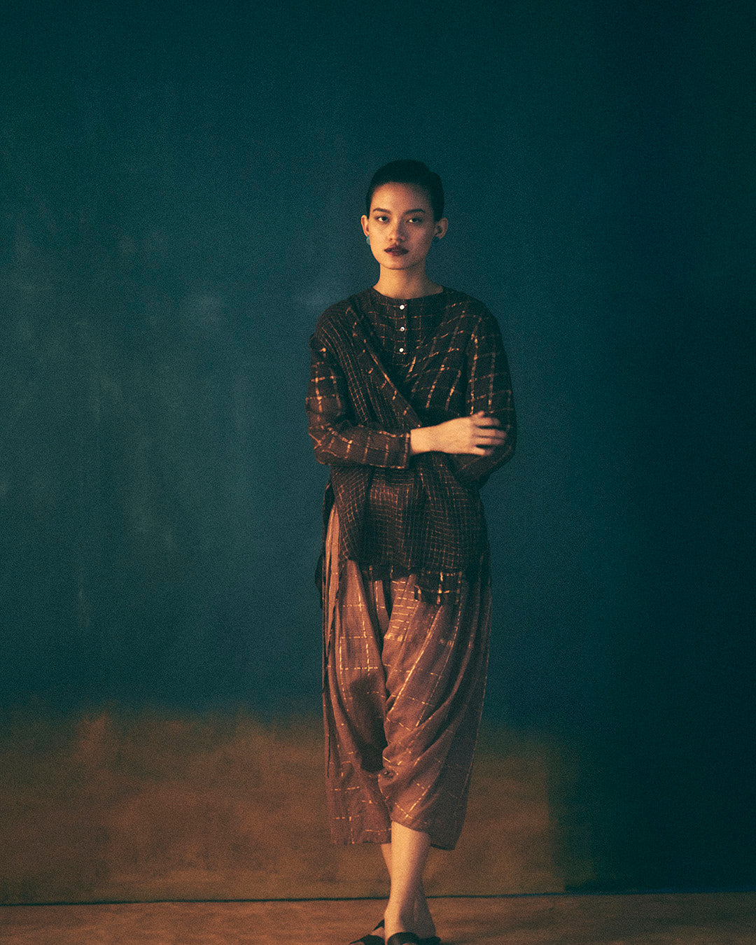 wear as a saree blouse or as a crop top with our relaxed heiko pants or quotient dhoti pants and layer with our kaze overlay for a co-ord look