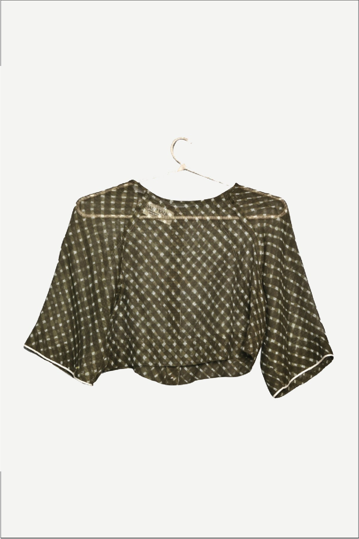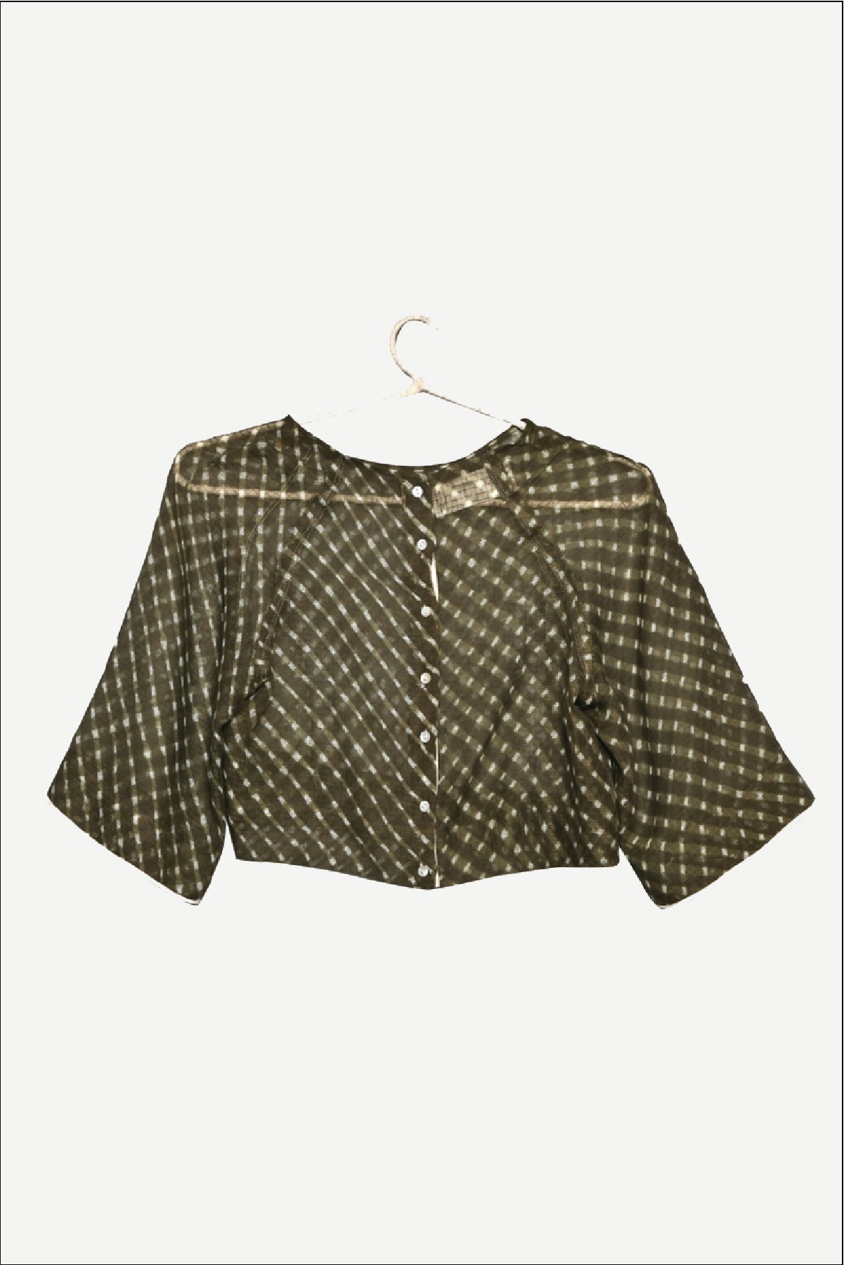 Half sleeved crop top in hand tie dyed mothda kota cotton