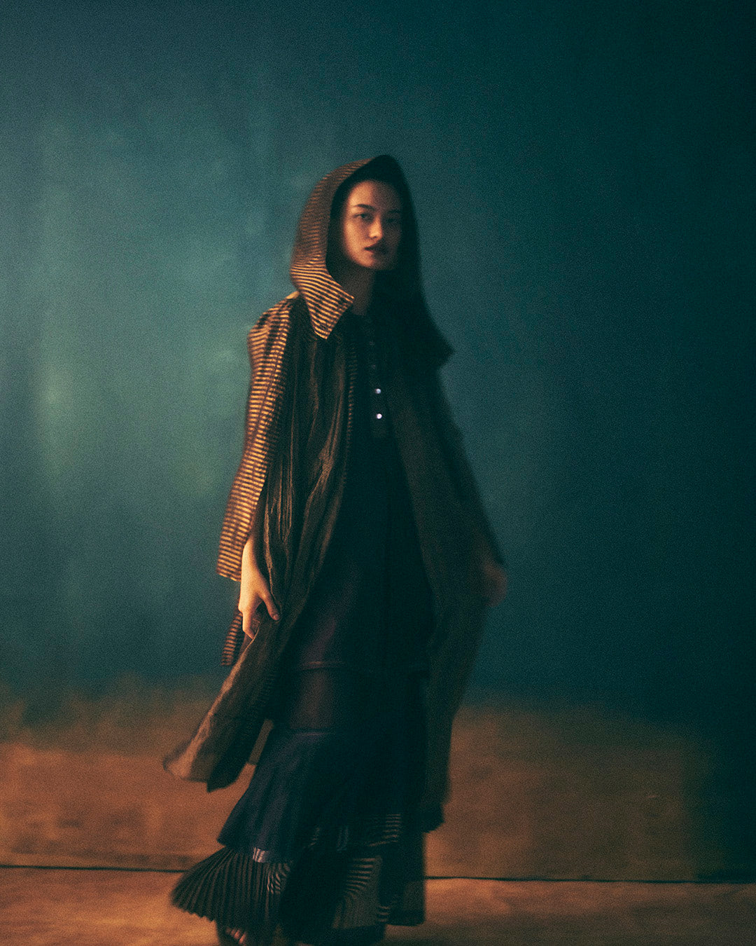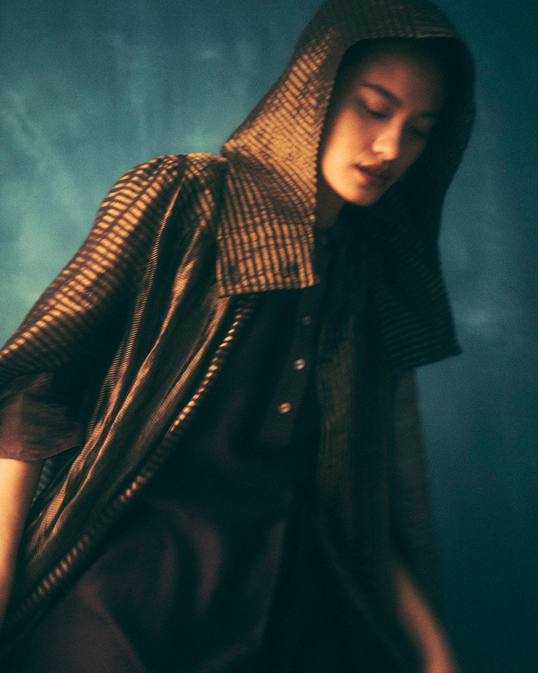Breezy collared overlay with a cape in striped zari tissue silk