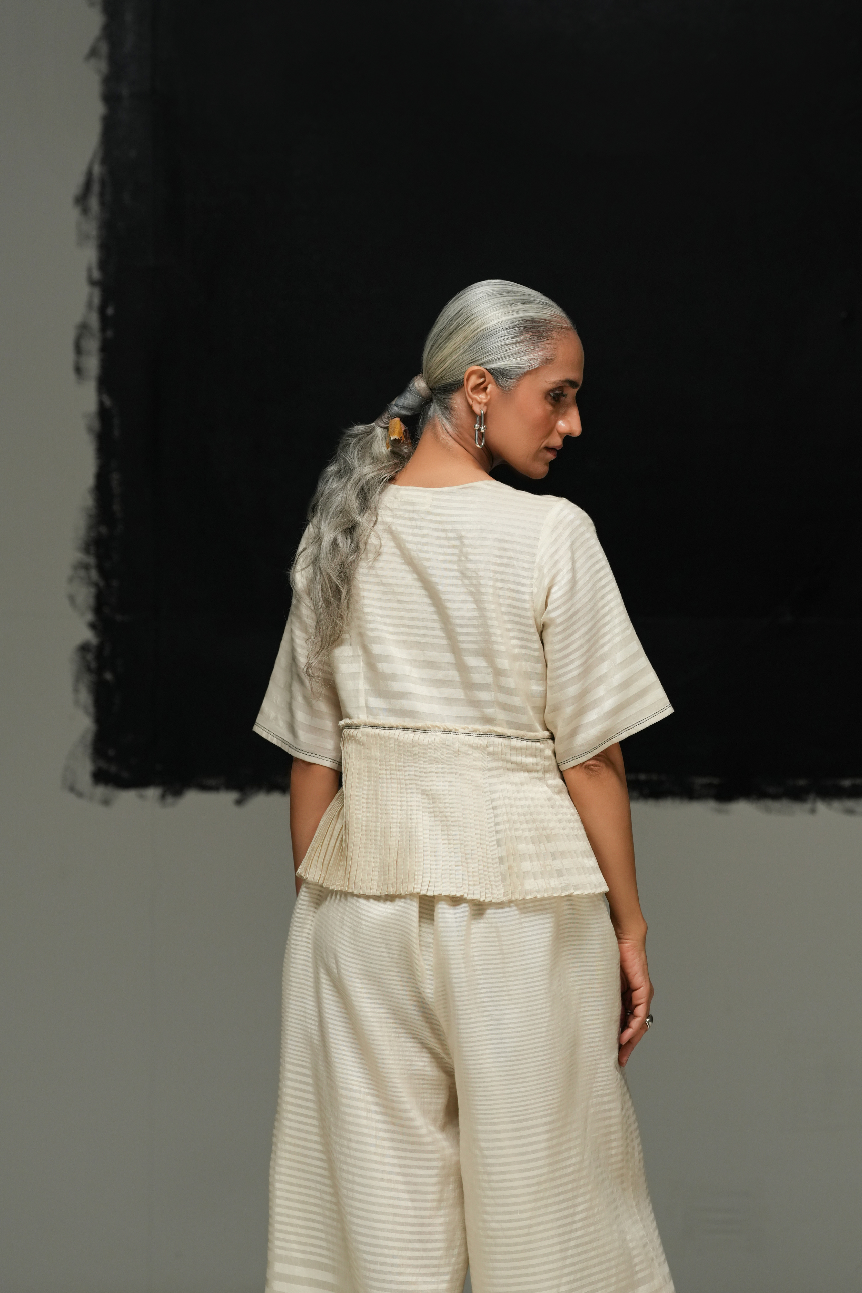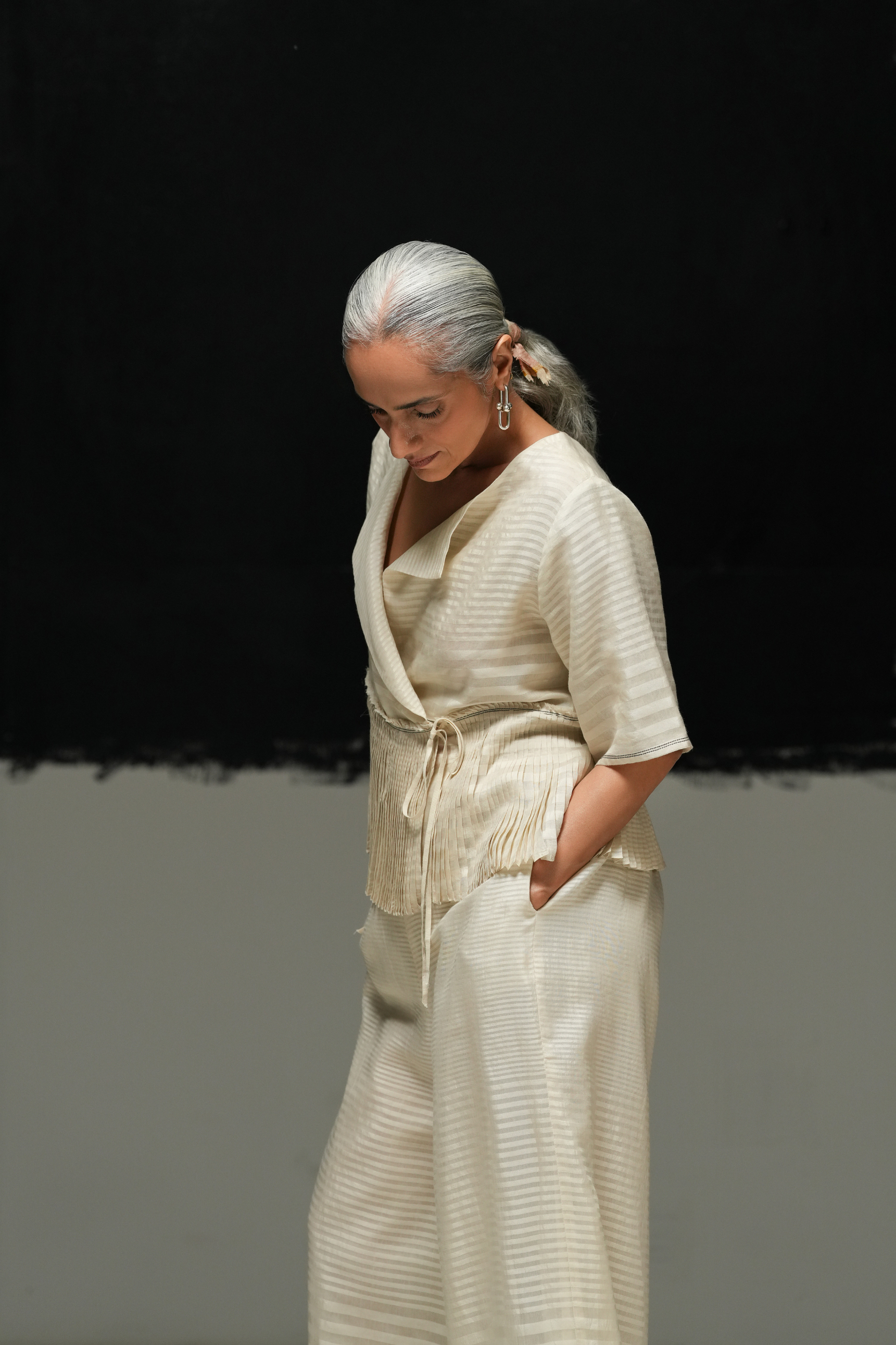 Relaxed farshi pajamas in handwoven maheshwari silk.