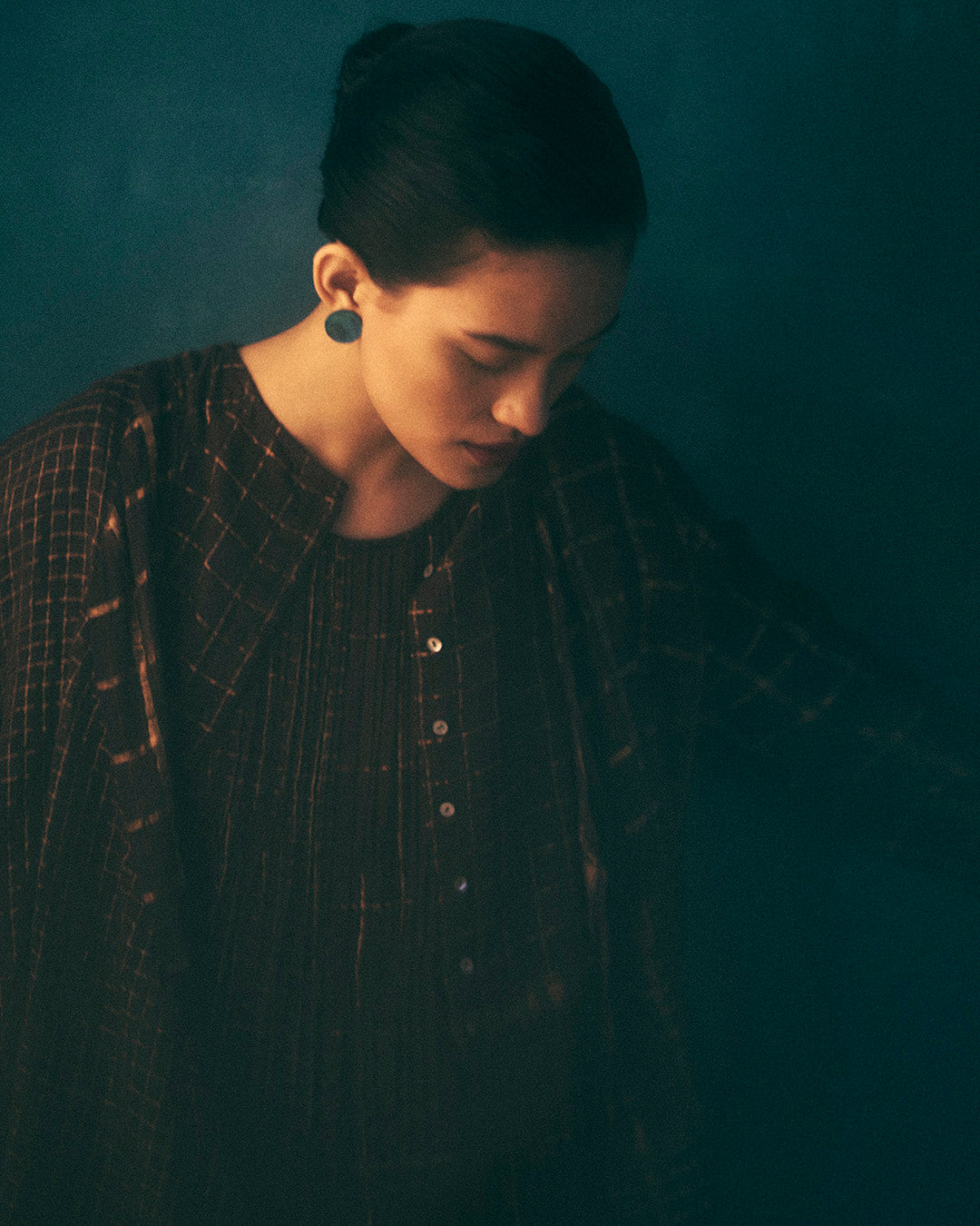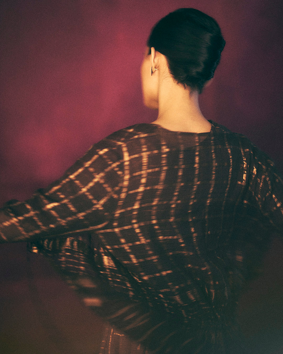 Relaxed overlay in checkered zari kota cotton cinched at the back with tie details