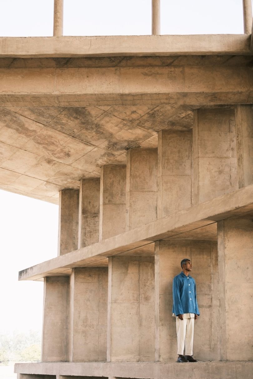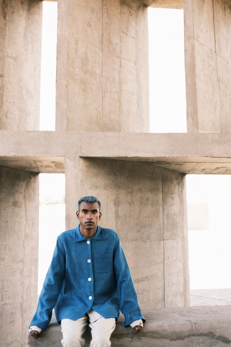 Naturally dyed, tailored jacket with kantha details in 100% handloom cotton