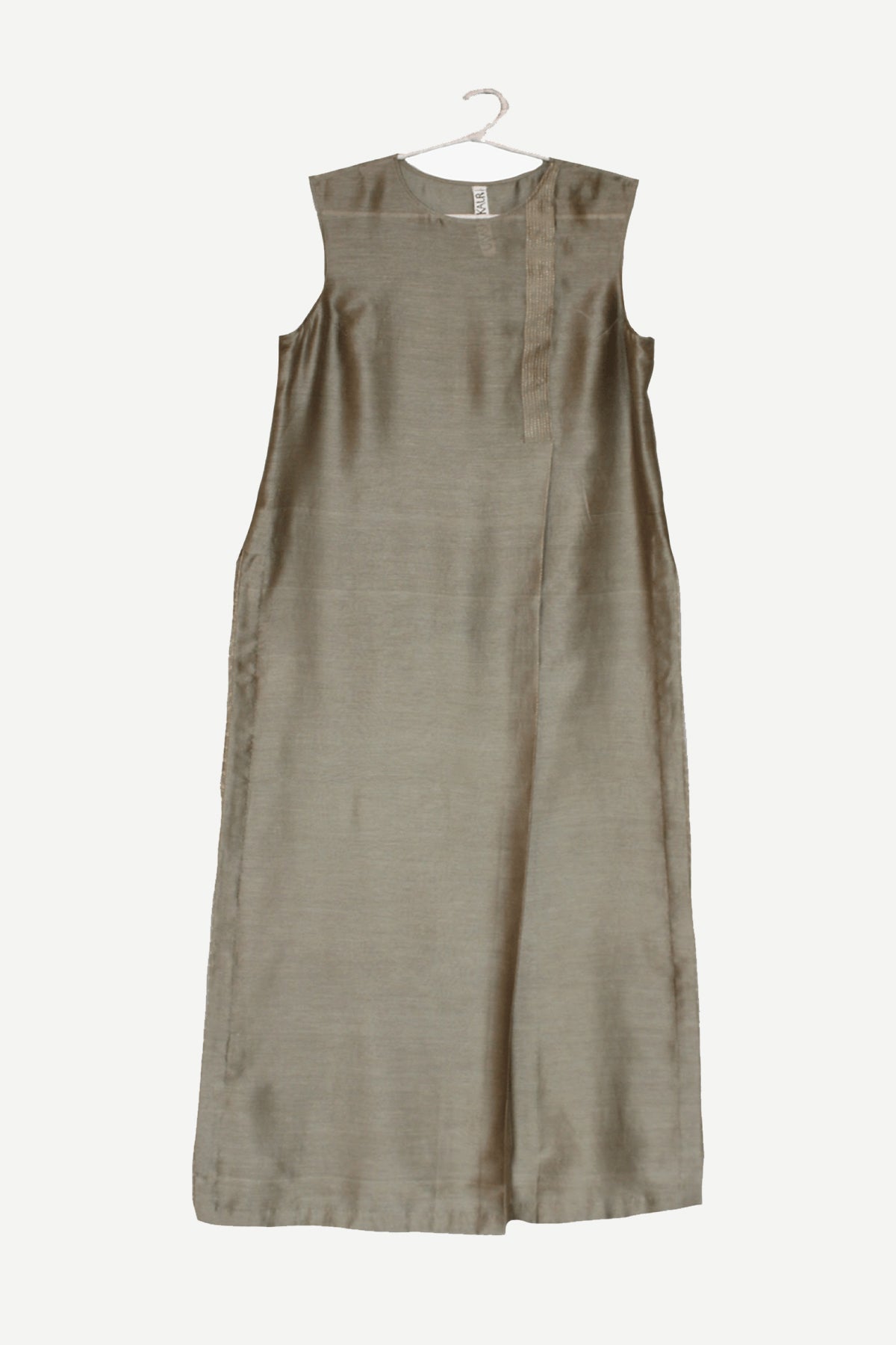 Sleeveless straight kurta in cotton silk with zari stitch line details