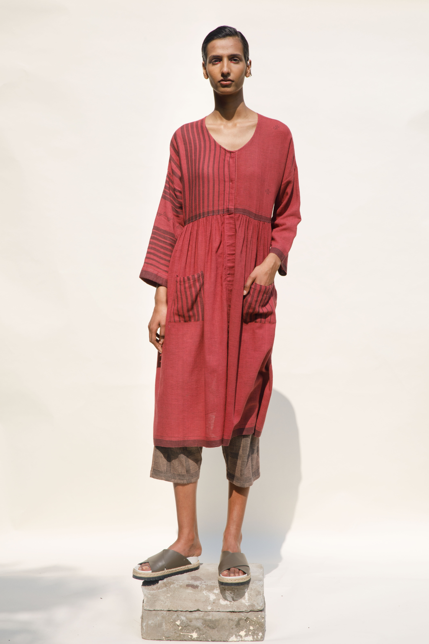 Button-down, colour blocked dress in handspun organic cotton pair it with easy pants or layer it on a tunic/dress.
