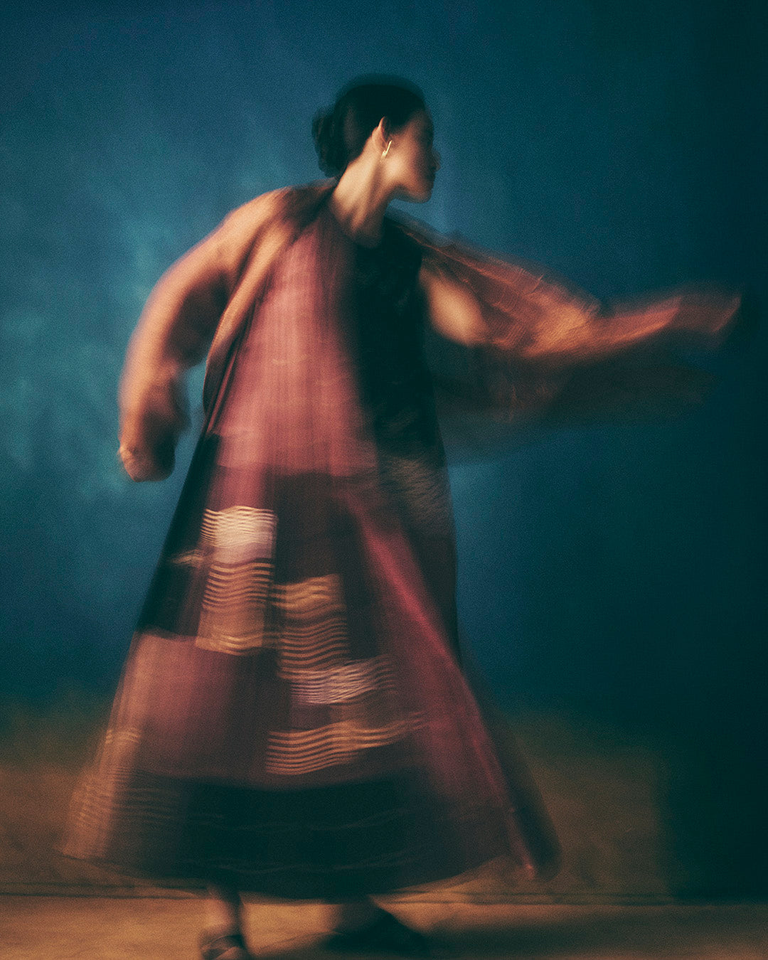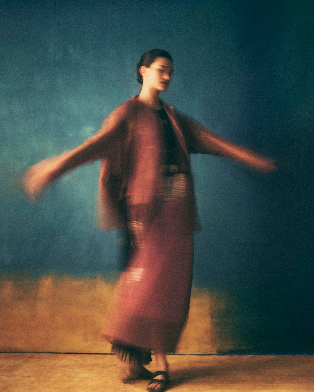 Technique: patchwork, a restorative process of piecing together leftover handcrafted textiles through dimensional threadwork to give them new life