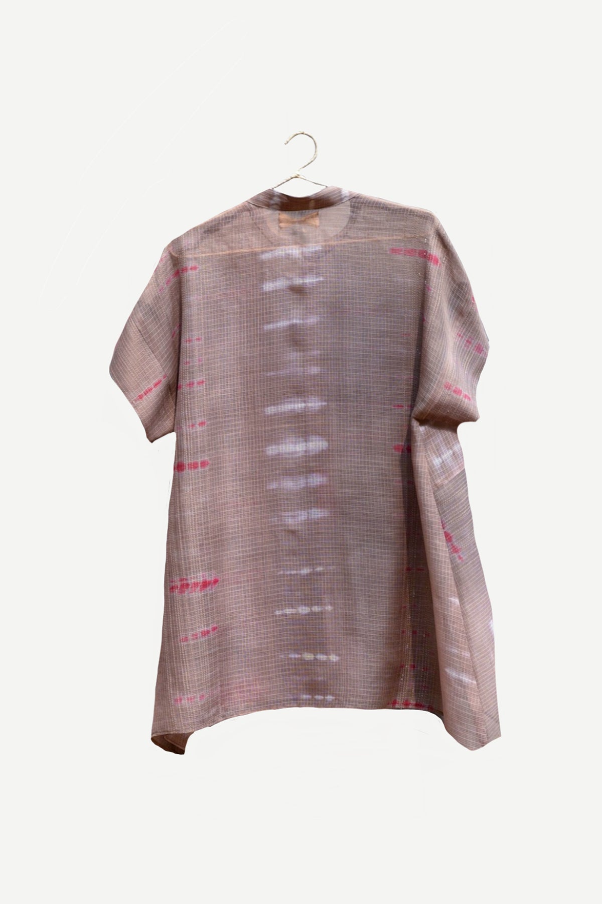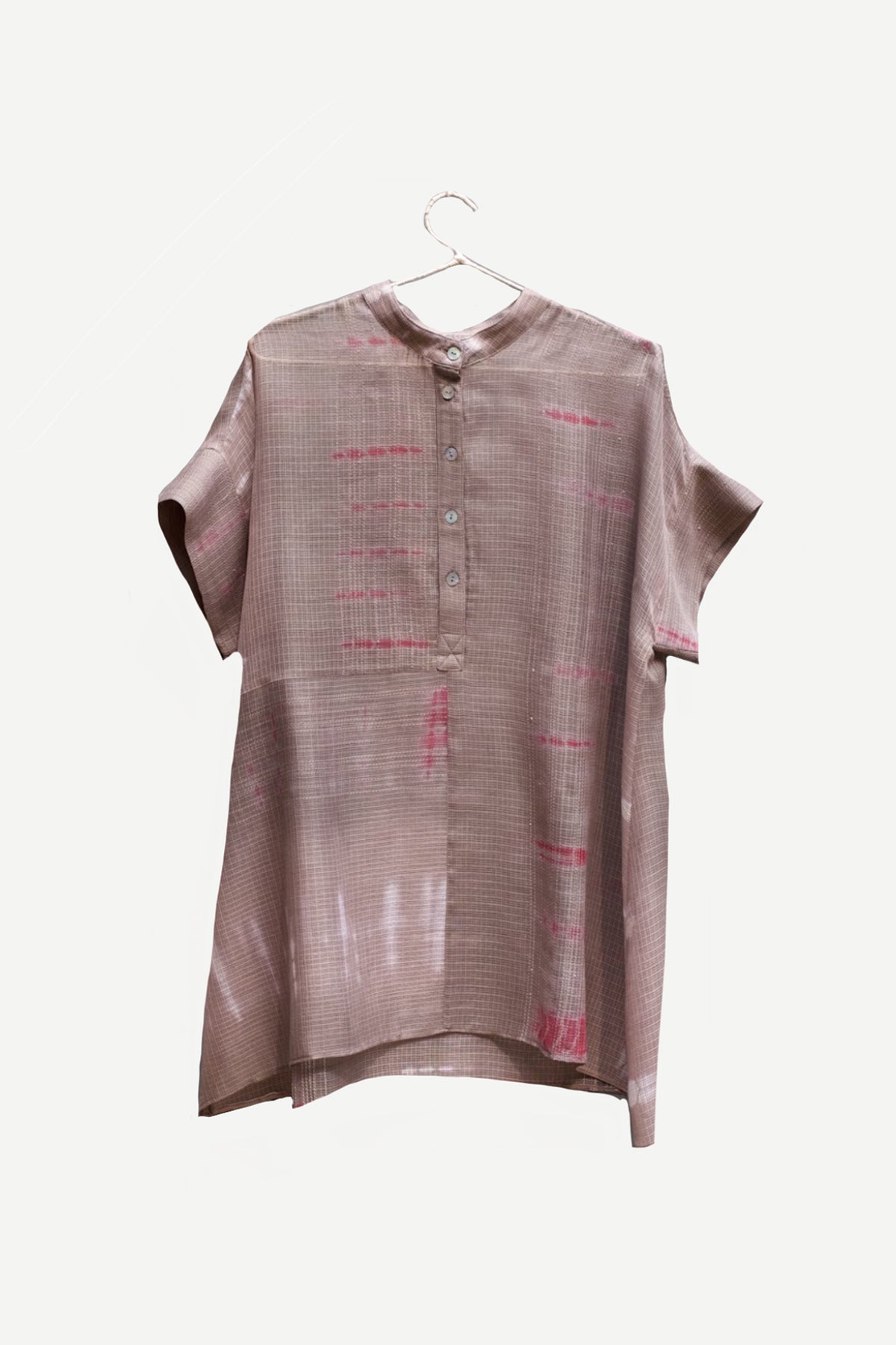 Breezy top in hand-done tie and dye kota cotton with stitch line details adding texture