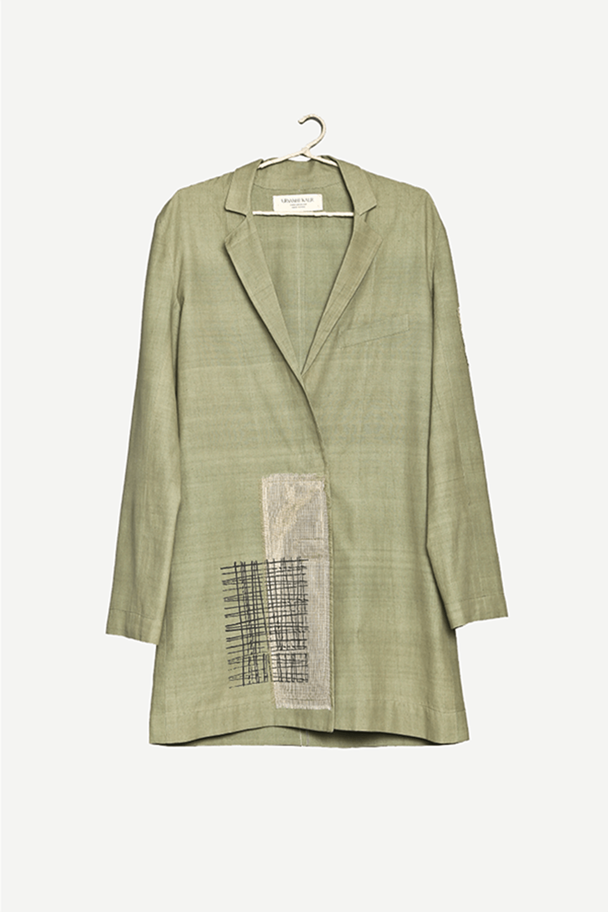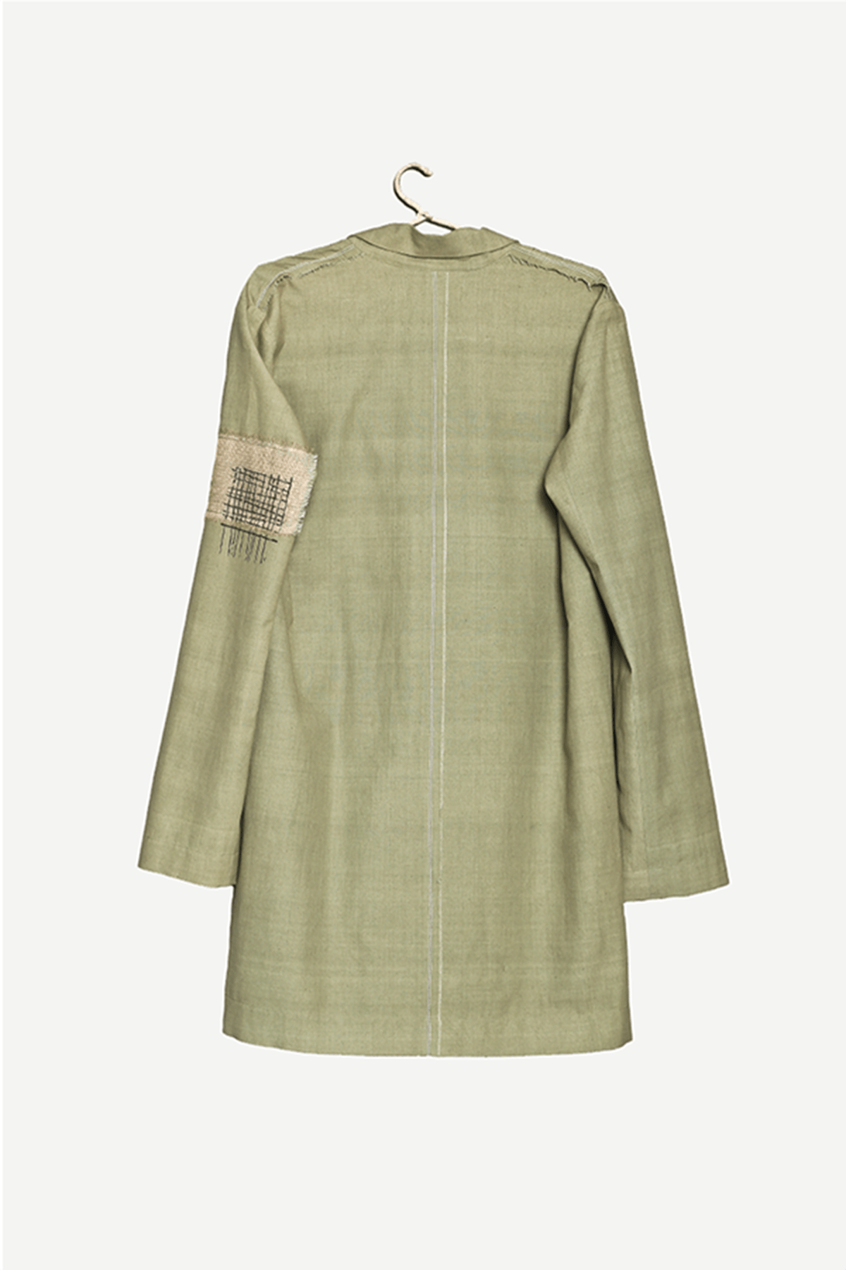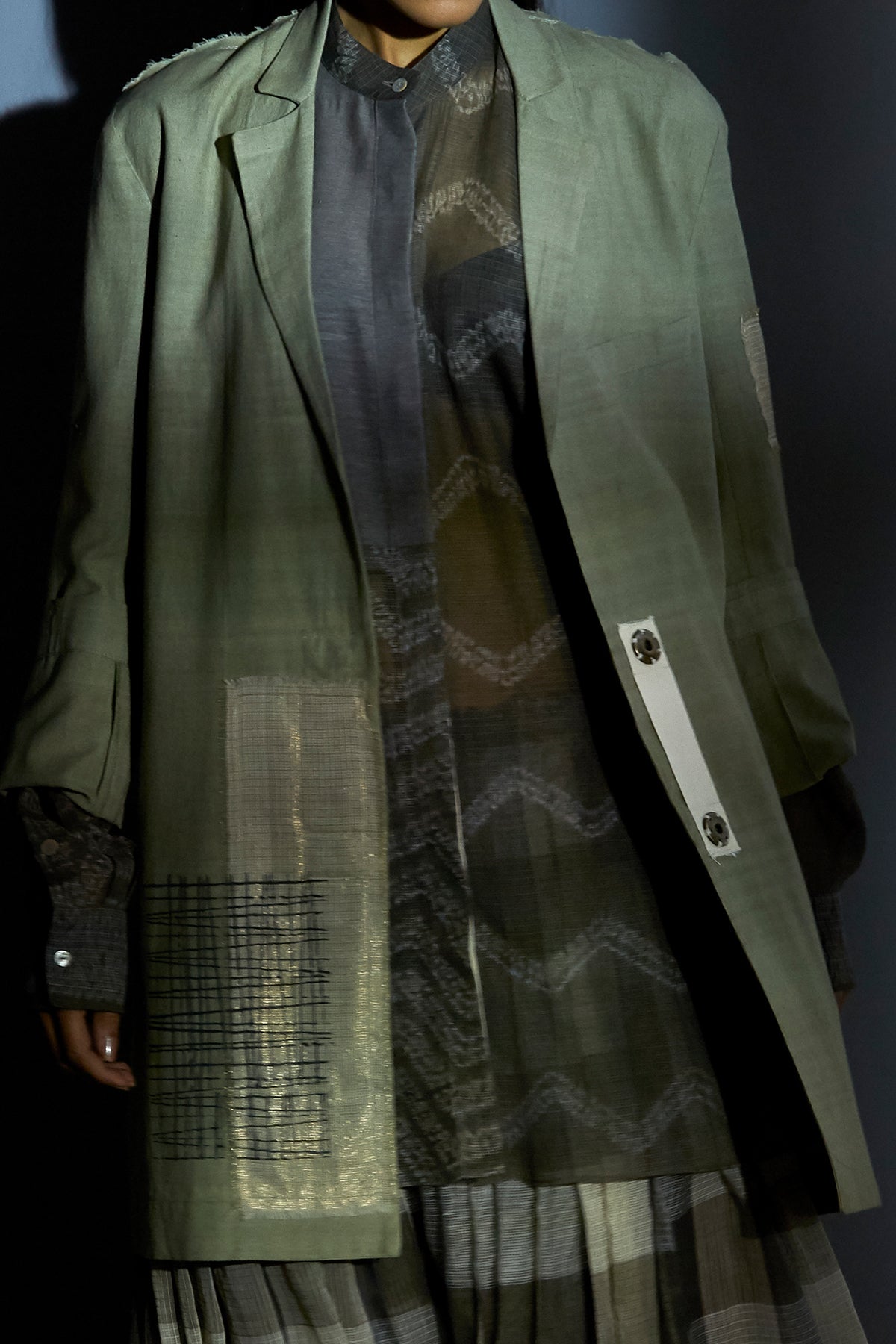 Blockprinted jacket with zari kota silk patch in handwoven organic