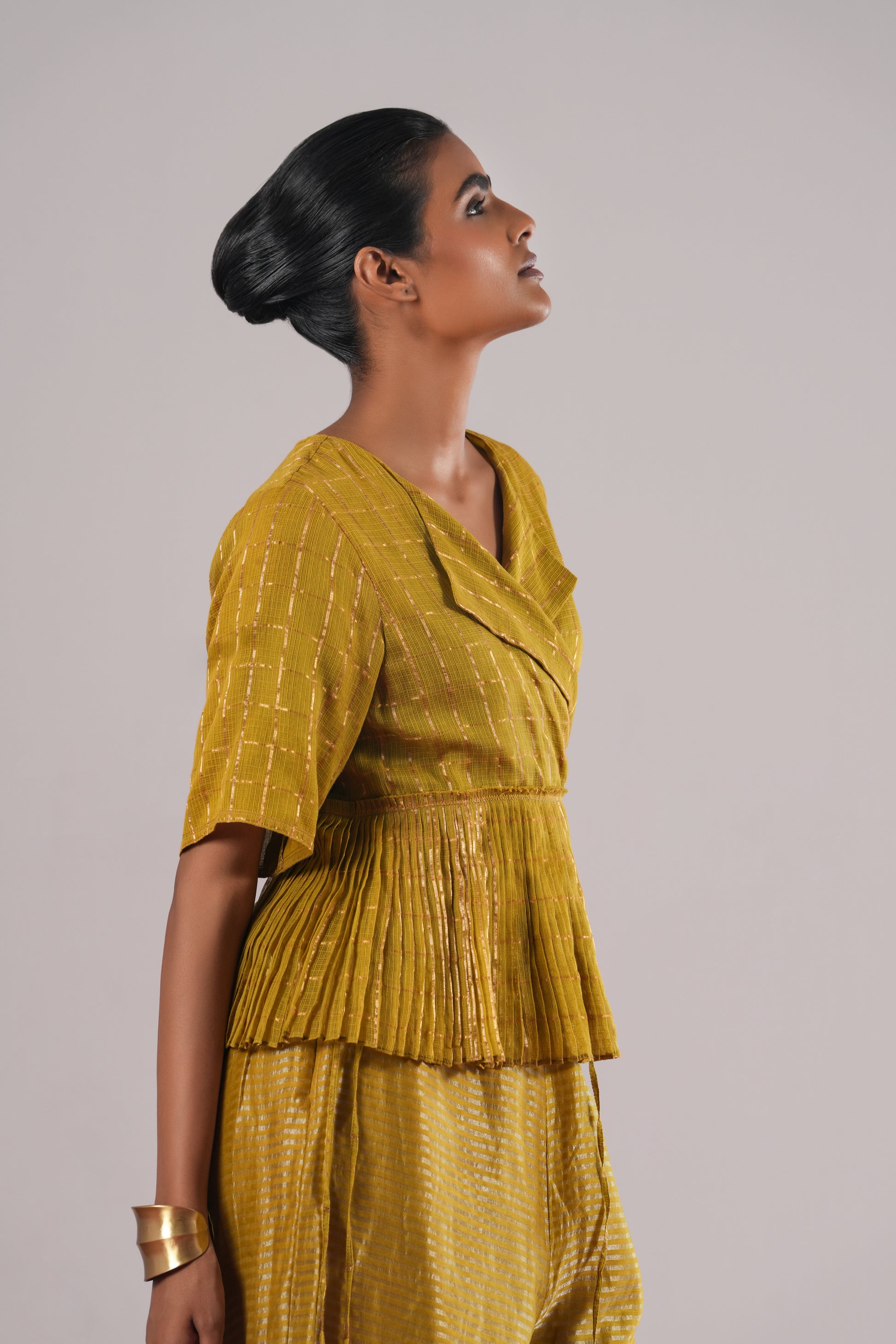Easy wide-leg pants in striped tissue silk.