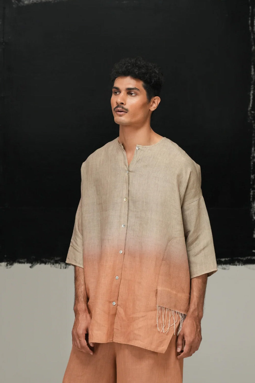 Relaxed top with dip-dye detailing, crafted in handwoven fabric
