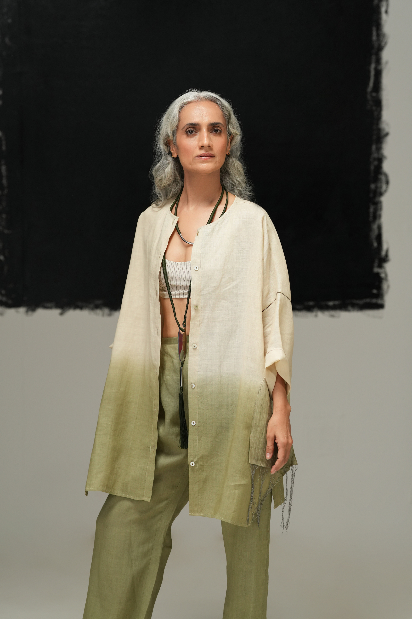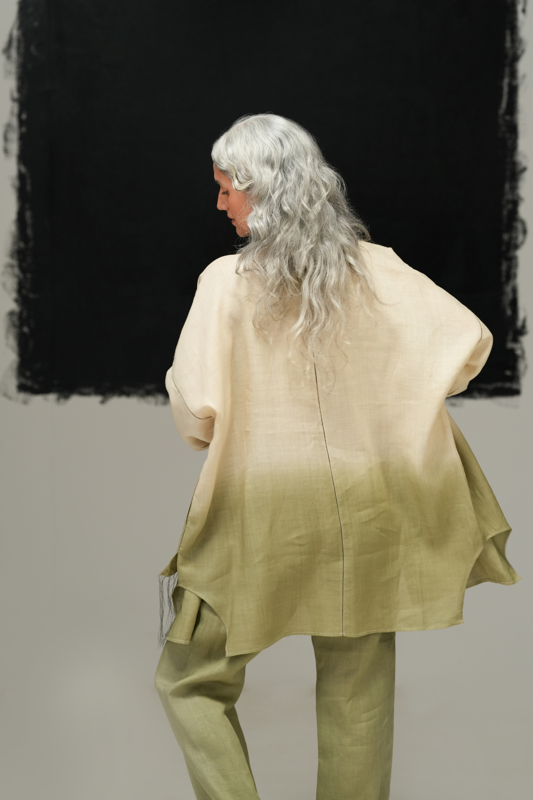 Fabric & technique: handwoven fabric with dip-dye detailing-linen stich line