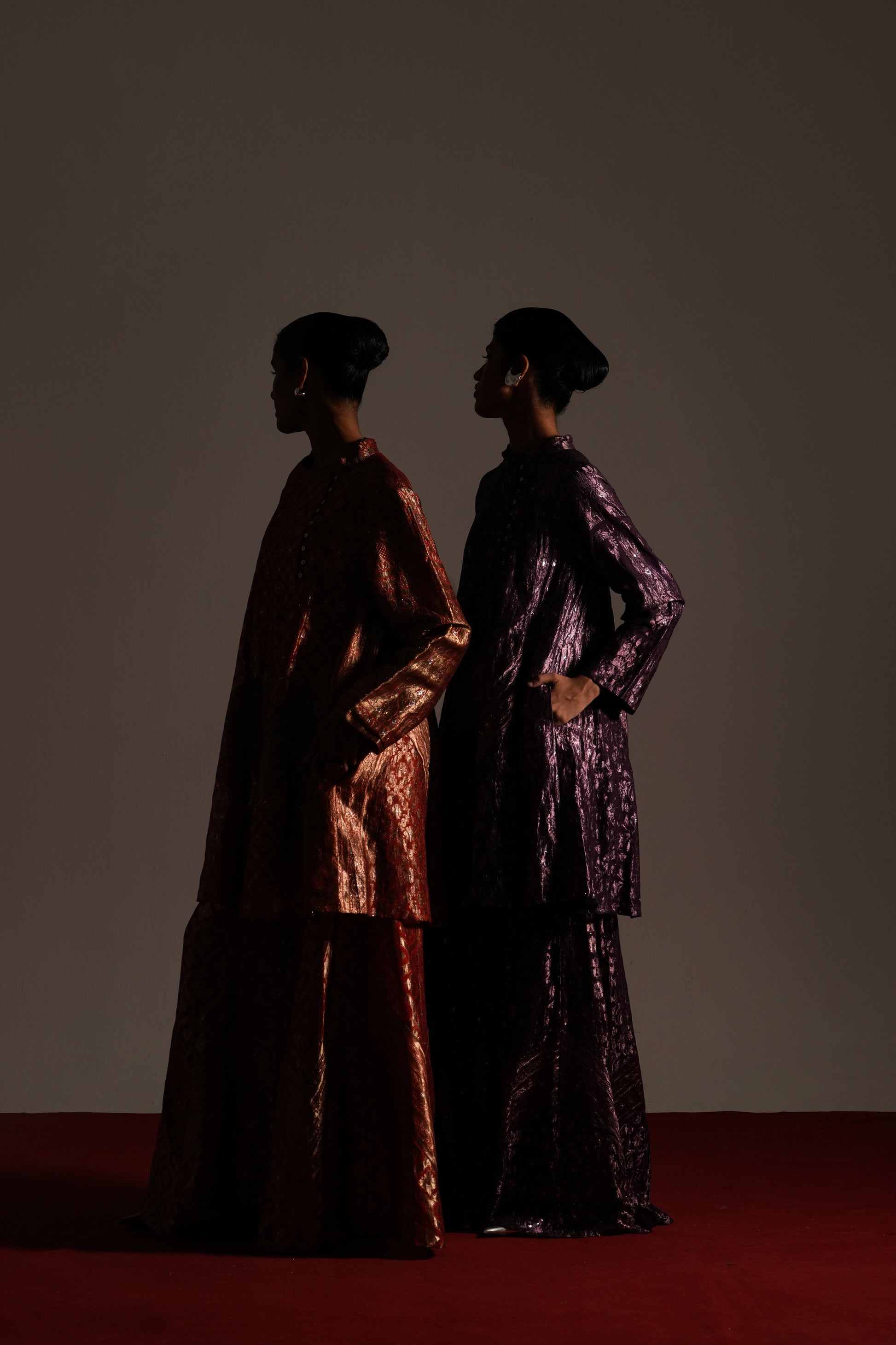 The label’s interpretation of the classic gharara, the Suki Pants are crafted from post-consumer sarees — reviving heritage textiles through a modern lens. Fluid yet structured, they embody the spirit of renewal central to the Urvashi Kaur ethos.
