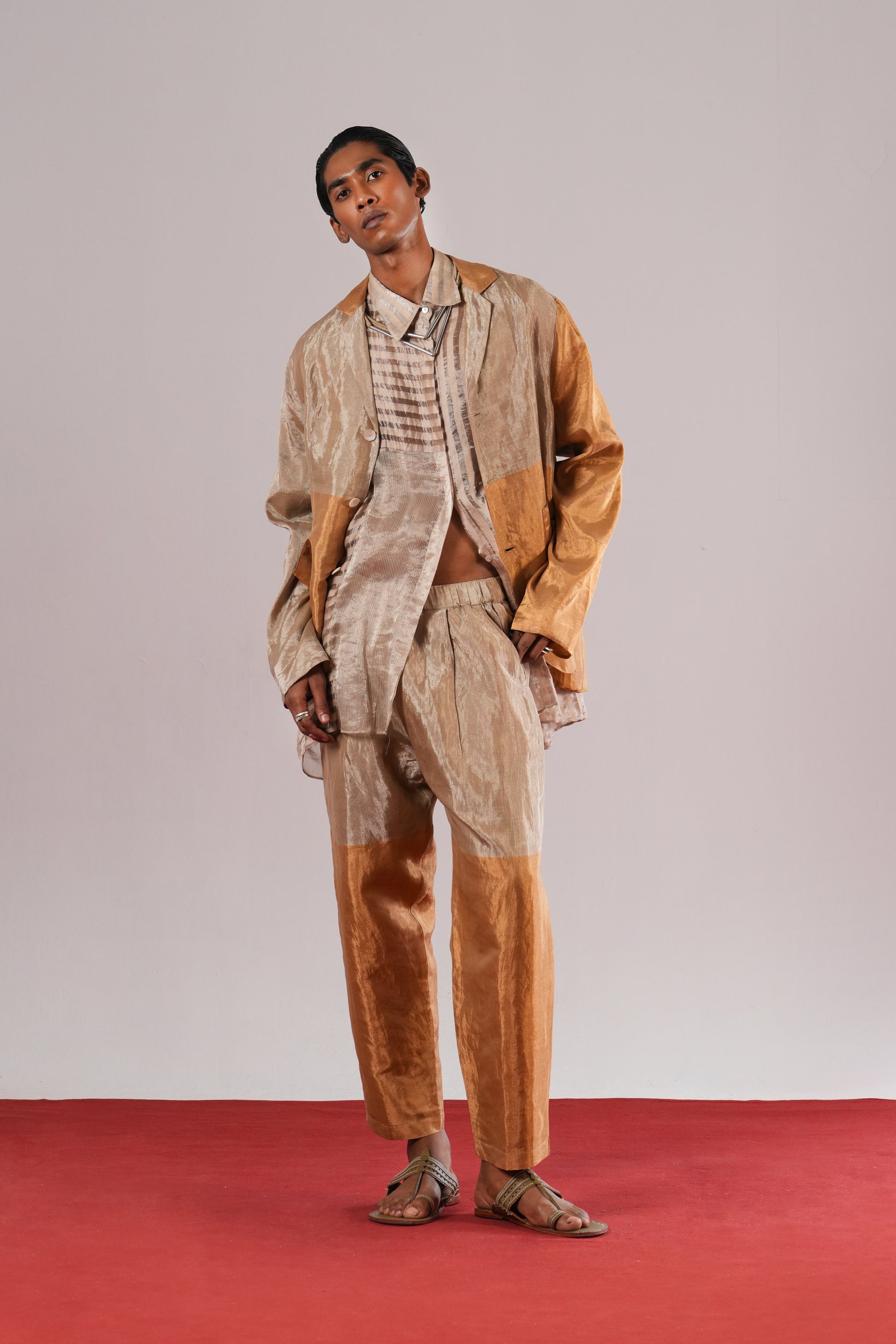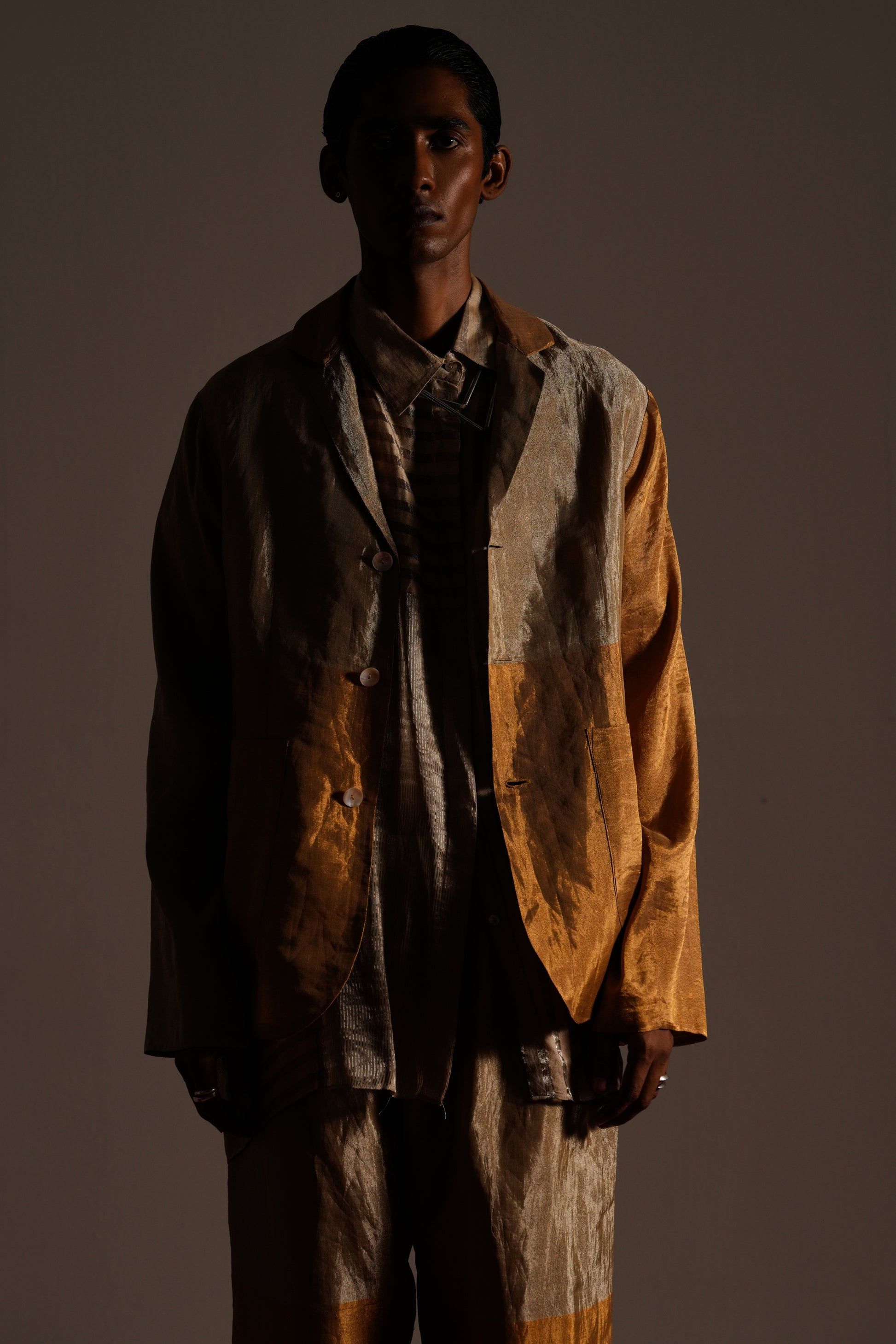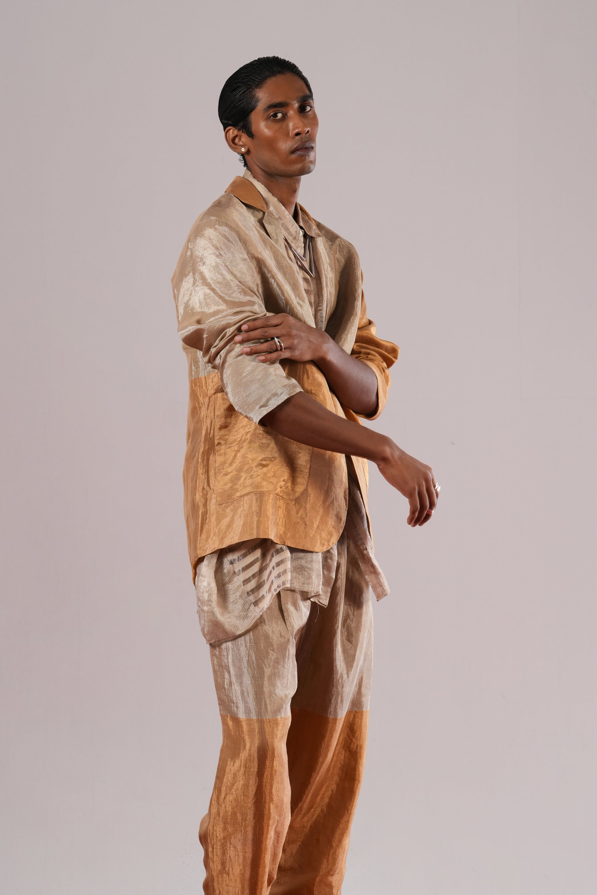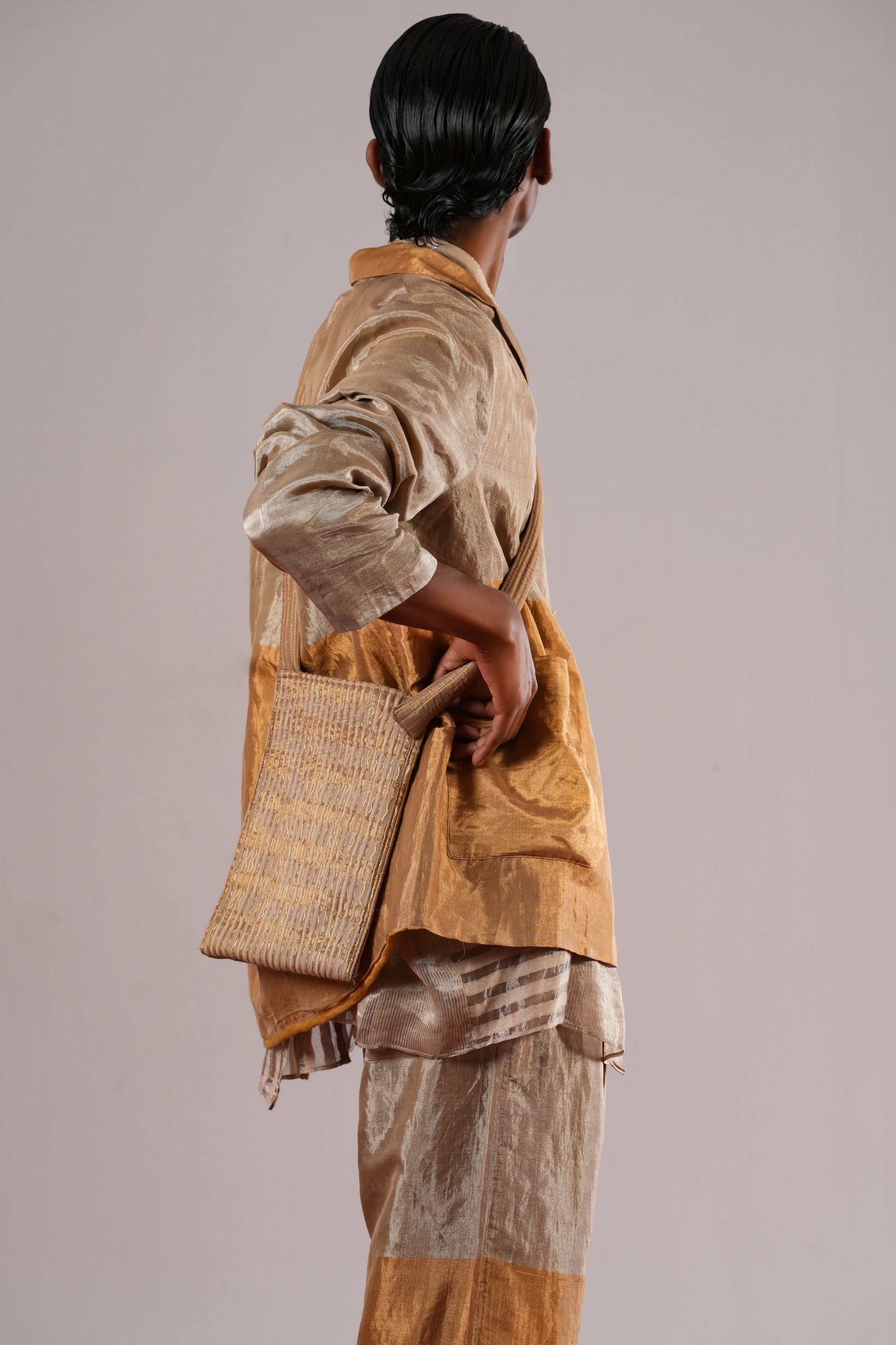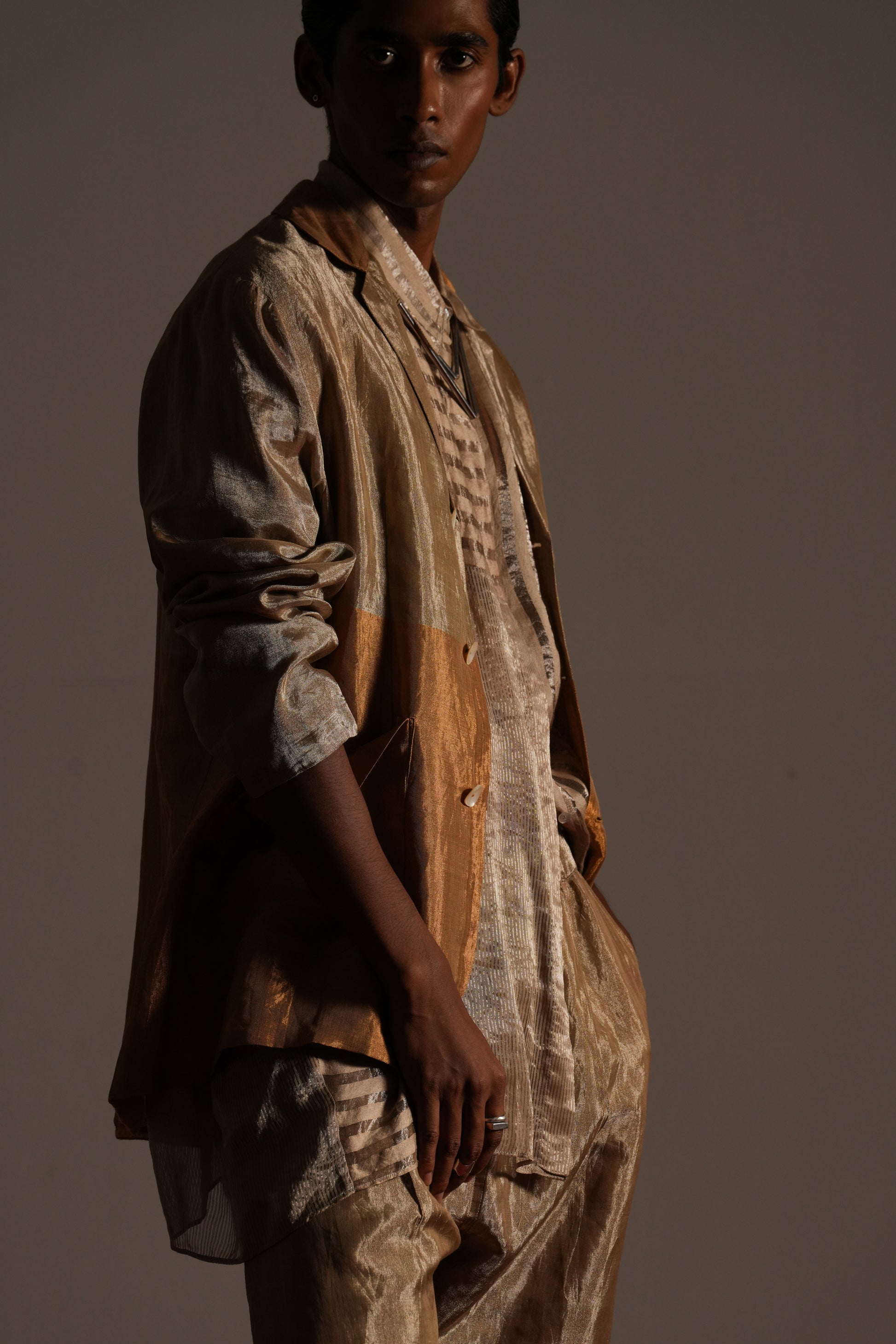 A body-inclusive, hand-woven shirt in chanderi silk with an uneven hemline that moves with ease.