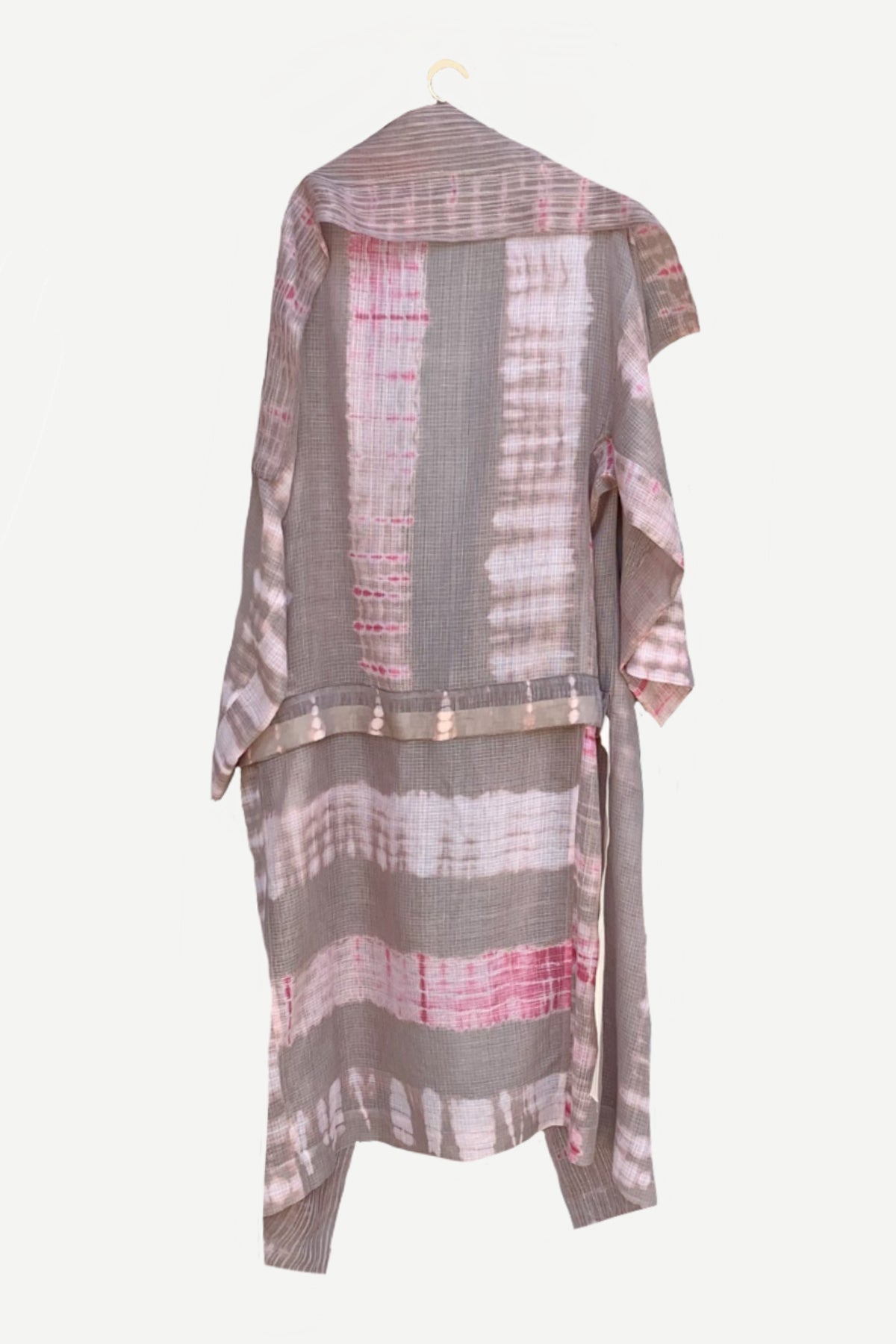 Antifit panelled overlay in hand tie and dye kota cotton with stitch line details adding texture pair the overlay with our morrocan pants or easy shorts and layer over a matching shirt
