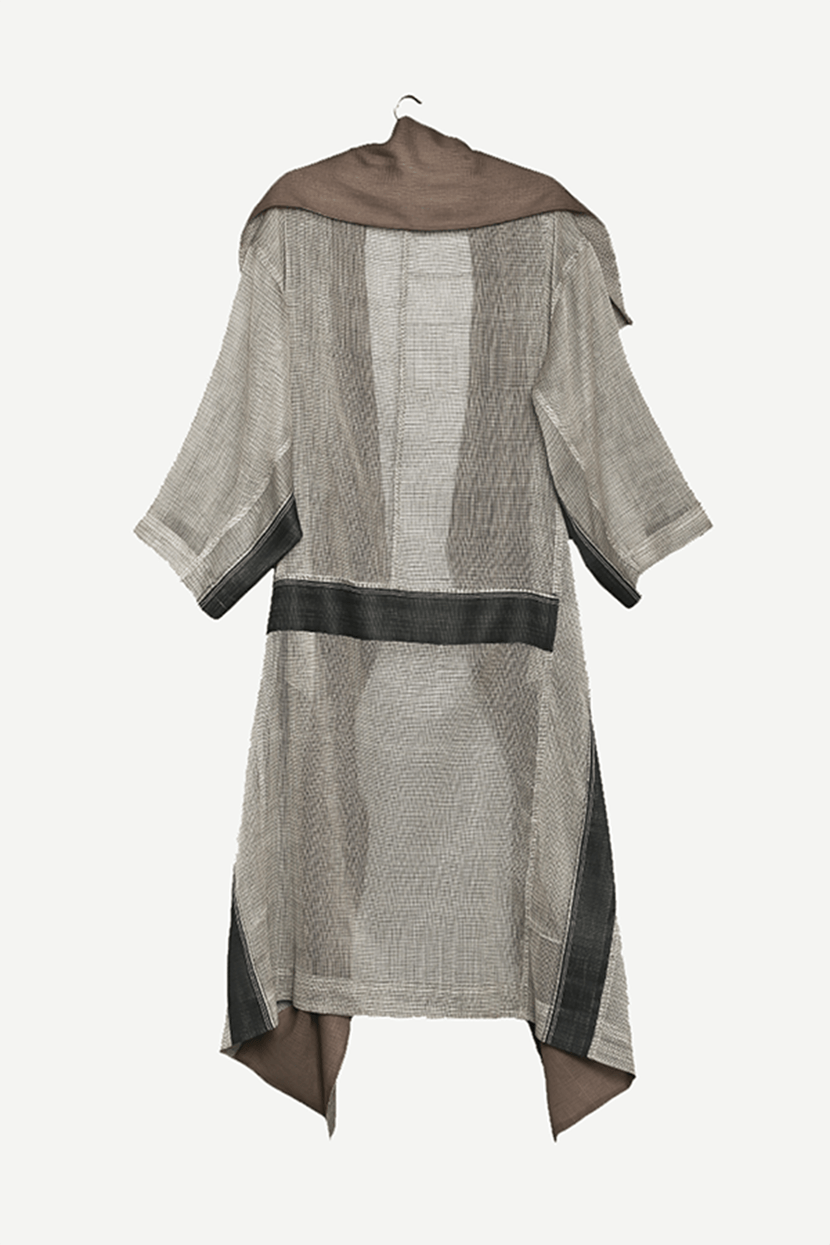 Color blocked anti fit panelled jacket in handwoven silk by the artisans of kota.